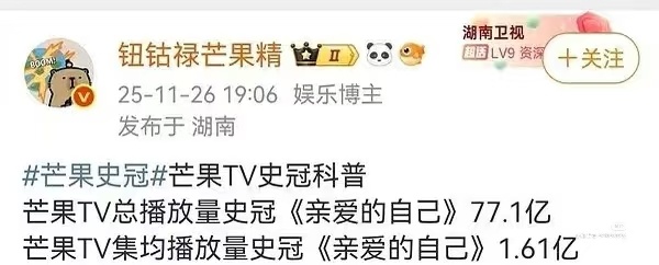 有没有可能这俩都不是芒果史冠。芒果TV台前真史冠是这部亲爱的自己。而且是双史冠。芒果史冠