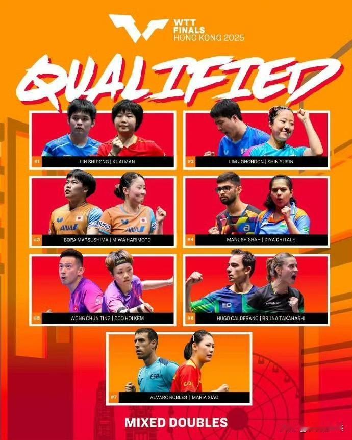 WTT:下一站 WTT香港总决赛站🚉 王楚钦、孙颖莎以东道主外卡身份,补全混双参赛阵容! 2025.11.26