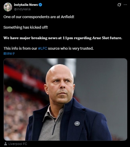转会信息博主indykailaNews(绿帽哥)发布报道称:“我们的一位记者正在安菲尔德!有些大事发生了!我们将在晚上11点(北京时间早上7点)带来关于斯洛特未来的重大突发新闻。这些信息来自我们非常值得信赖的利物浦消息来源。”