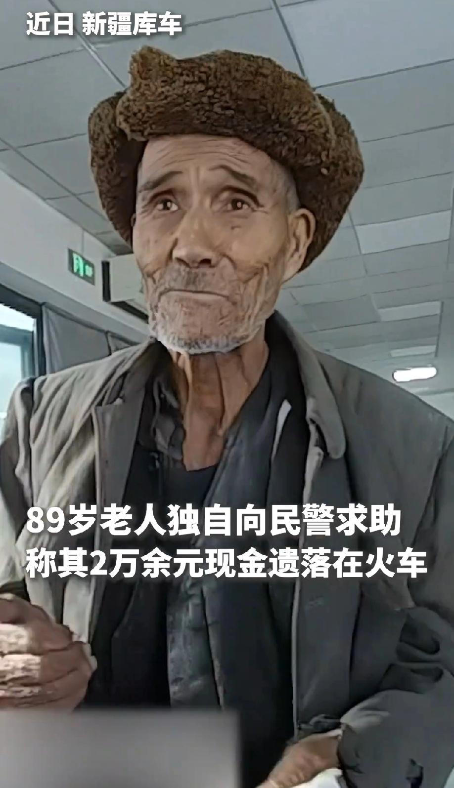 新疆库车,一位89岁老人在火车上弄丢了自己攒了几十年的2万多块看病钱,急得在派出