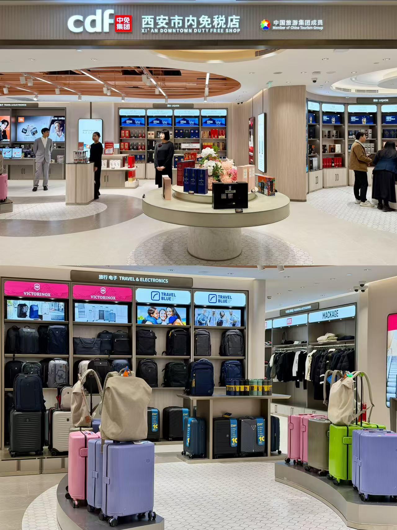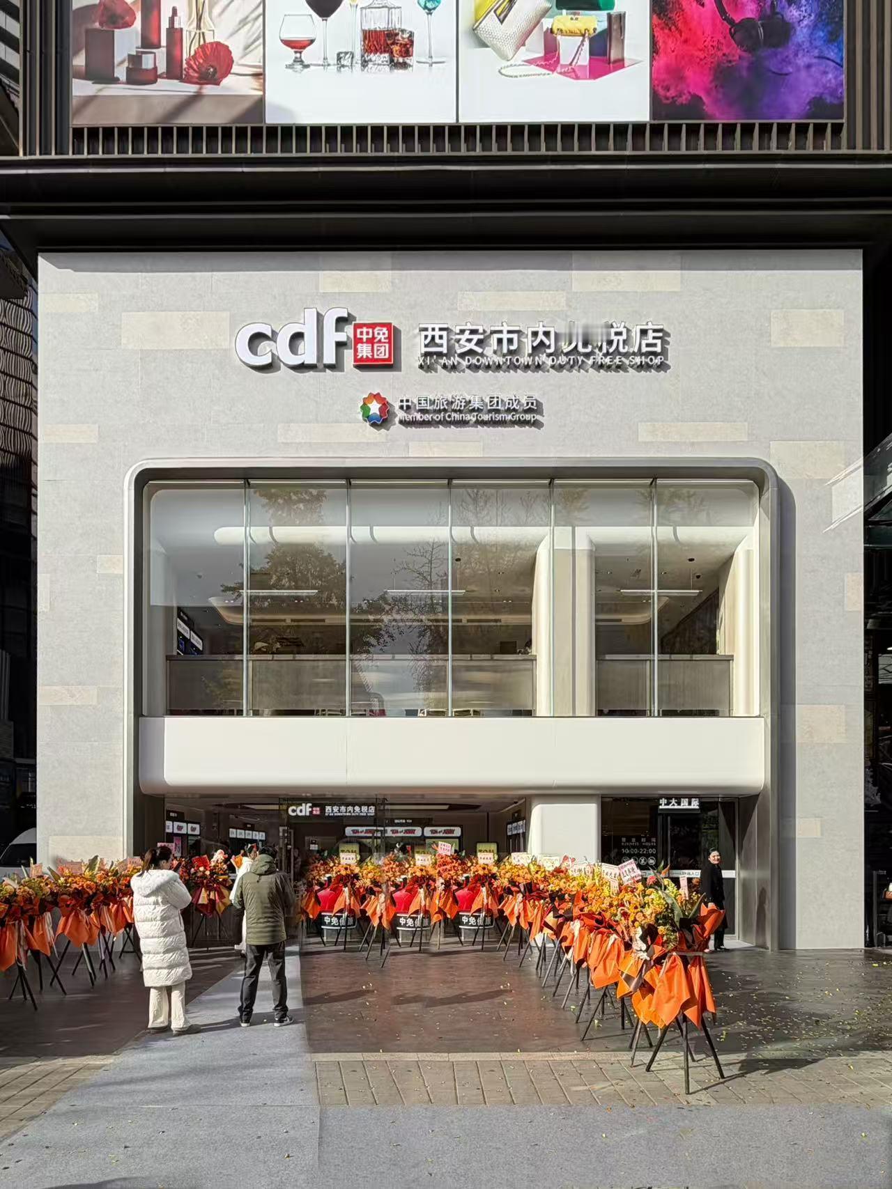 西北首家市内免税店就位,经过1年筹备,老牌商圈终于迎来新角色,CDF-西安市内免税店于南大街正式启幕,占据2050m²共三个楼层。 通过免税+有税搭配,一站式上架国际名品与国潮好物,多元业态+沉浸场景,创造多元消费体验。其中超200多个品类,1万多件商品,涵盖国际一线美妆、腕表珠宝、进口酒水、时尚箱包、电子产品等。 有税区则引入潮玩集市、国潮、户外、传统非遗等特色商品,满足不同群体需求。