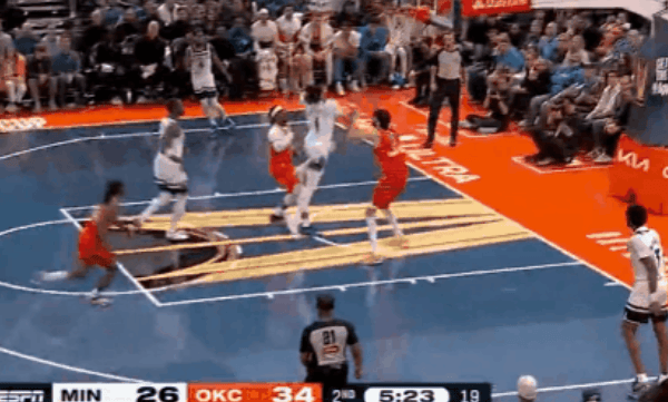虎扑11月27日讯NBA杯小组赛,森林狼对阵雷霆的比赛正在进行中。