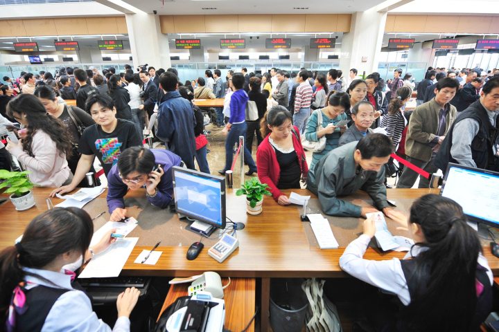 2009年,杭州“市民之家”实行双休日对外开放服务,图为周末前来办事的市民