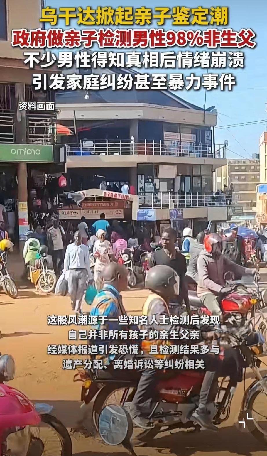 乌干达近期掀起亲子鉴定热潮,引发巨大家庭风波。起因是此前一位乌干达富豪给几位妻子生下的二十多个孩子做亲子鉴定,结果悲剧了,然后一名议员也给9个孩子做鉴定,结果5个不是亲生的,然后引发全国效仿…潇湘晨报报道的98%不是亲生是不是夸张了?有这么高吗?[笑哭][笑哭][笑哭]与亲子鉴定 广州亲子鉴定 贵阳亲子鉴定