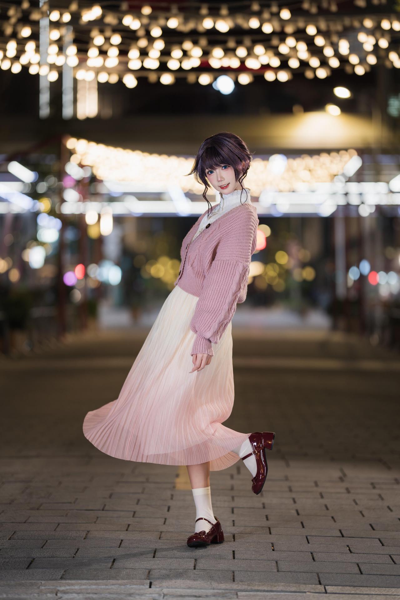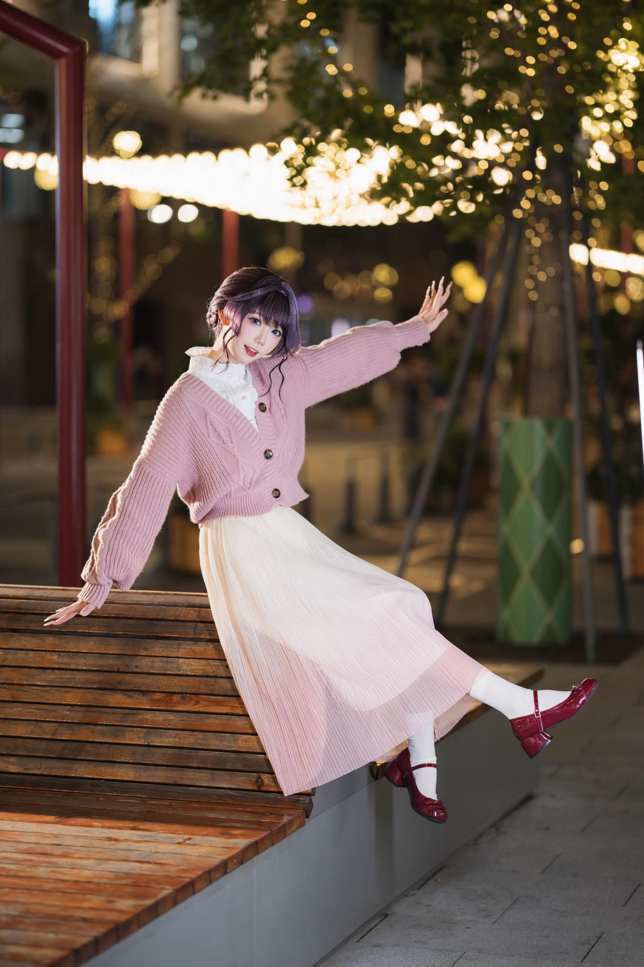 甜美少女风,粉色毛衣搭配白色长裙,元气满满!💖✨