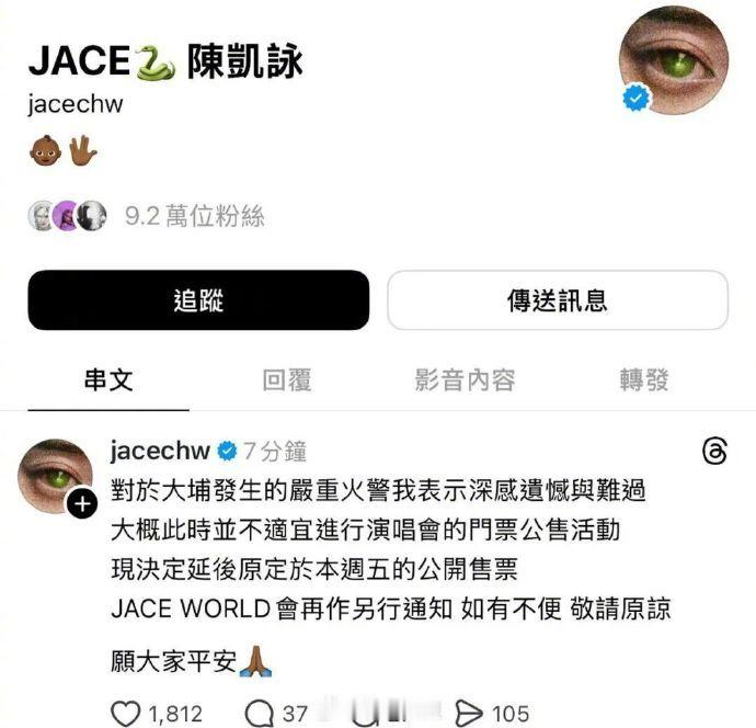 【香港多个文娱活动延期或取消】据潇湘晨报报道:11月26日下午,香港新界大埔屋邨宏福苑多栋住宅楼发生火灾,造成重大人员伤亡。五级大火火情全民关注,不少香港演艺界人士都出一分力转发救援信息。大埔街坊“歌神”许冠杰在社交平台发声,他分享了自己的手写信抒发感受:作为大埔街坊,我感同身受!希望各界支持,集中协助消防处救援!天佑香港!香港火灾已致44人遇难受火灾影响,香港多个文娱活动宣布延期或取消。歌手Jace陈凯咏将于明年2月举行红馆演唱会,她于昨晚在社交平台发文宣布原定于本周五(11月27日)的公开售票将会延后:对于大埔发生的严重火警,我表示深感遗憾与难过,大概此时并不适宜进行演唱会的门票公售活动,现决定延后原定于本周五的公开售票,JACE WORLD会再作另行通知,如有不便,敬请原谅愿大家平安。艺人陈家乐和连诗雅原定27日以夫妻档在铜锣湾出席商场圣诞活动启动礼,该活动主办方宣布延期活动;佘诗曼原定27日在尖沙咀出席“金莎璀璨圣诞花园暨传媒工作坊预览活动”也将延期举行。容祖儿、Lollytalk成员Egg及Tania、谢嘉怡、孙慧雪、程人富、黄淑蔓、锺舒漫、何佩瑜、周家怡、汤怡、韦罗莎原安排于27日傍晚出席在香港迪士尼乐园举行的《优兽大都会2》(疯狂动物城2)首映礼,主办单位决定取消。李居明、龙贯天与江欣燕原定出明天《粤剧特朗普》记者会,主办单位决定延期。许冠杰原定27日出席大型舞剧「《武道》李小龙的有法与无限」,表演如常进行,但记者采访环节取消,原本有份出席采访的艺人还包括陈奕迅、RubberBand等。此外,台湾歌手林晓培与邓建明27日的《林晓培x 邓建明 起势摇滚演唱会》彩排访问宣传活动,也决定取消。
