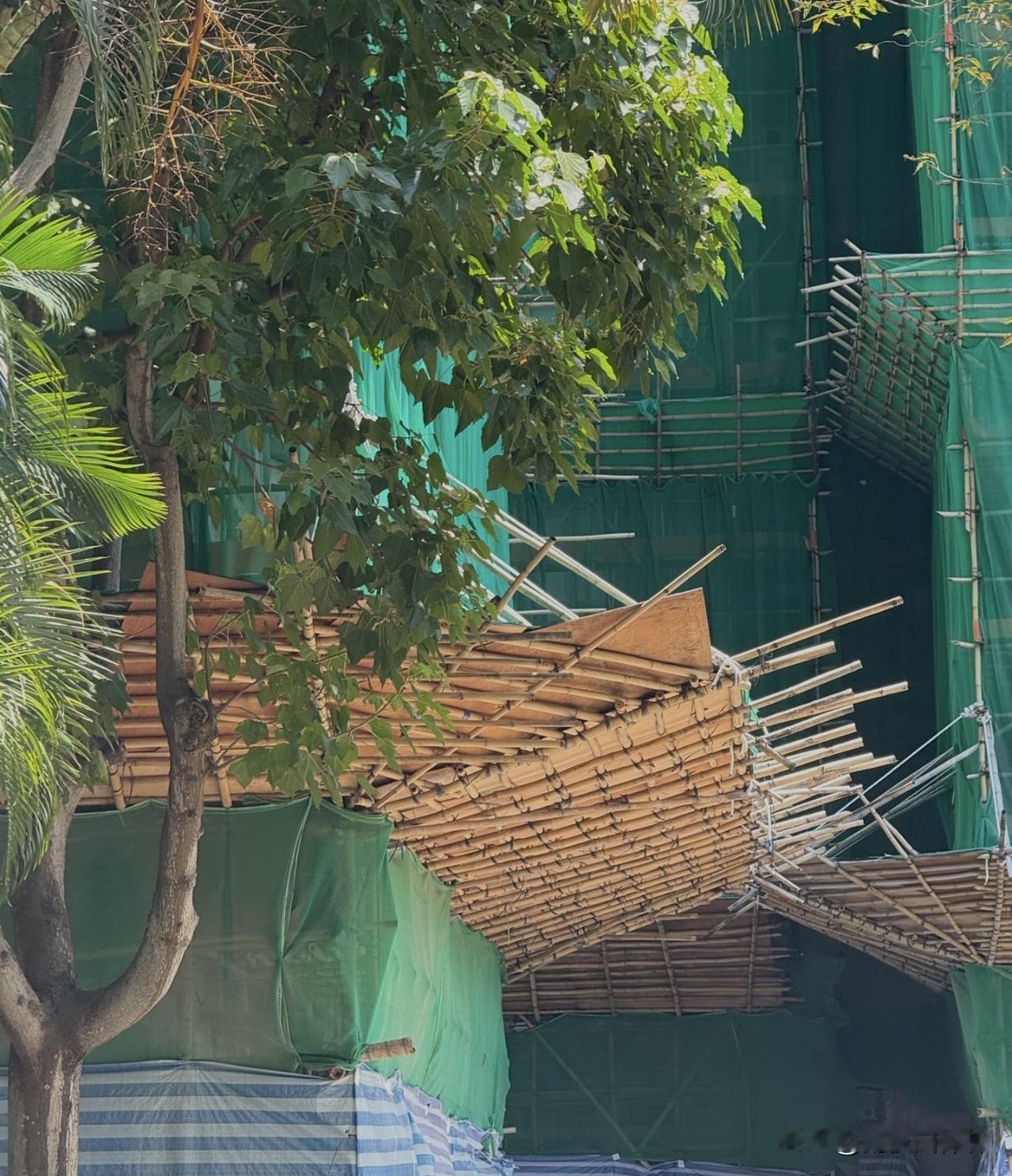 好巧不巧, 前段时间去香港旅游的时候经过宏福苑, 当时看到用竹子搭建的脚手架, 想到以前在港剧里有好多剧情都有演过阿sir追匪徒在脚手架上爬来爬去,觉得有趣就顺手拍了几张照片。 没想到这些竹子搭建的棚架居然是导致这场大火越烧越旺的主因之一,这么多的竹子,可都是实打实的柴火堆啊,我记得以前小时候在乡下住的时候,家里做柴火饭,我太婆就喜欢烧竹子,起火快又烧的旺。 本来是要翻新外墙的大楼,一夜之间,烧得只剩框架了,早知道这样,还不如不要翻新呢,据说还是业主自费出钱的,现在一定悔死了吧!