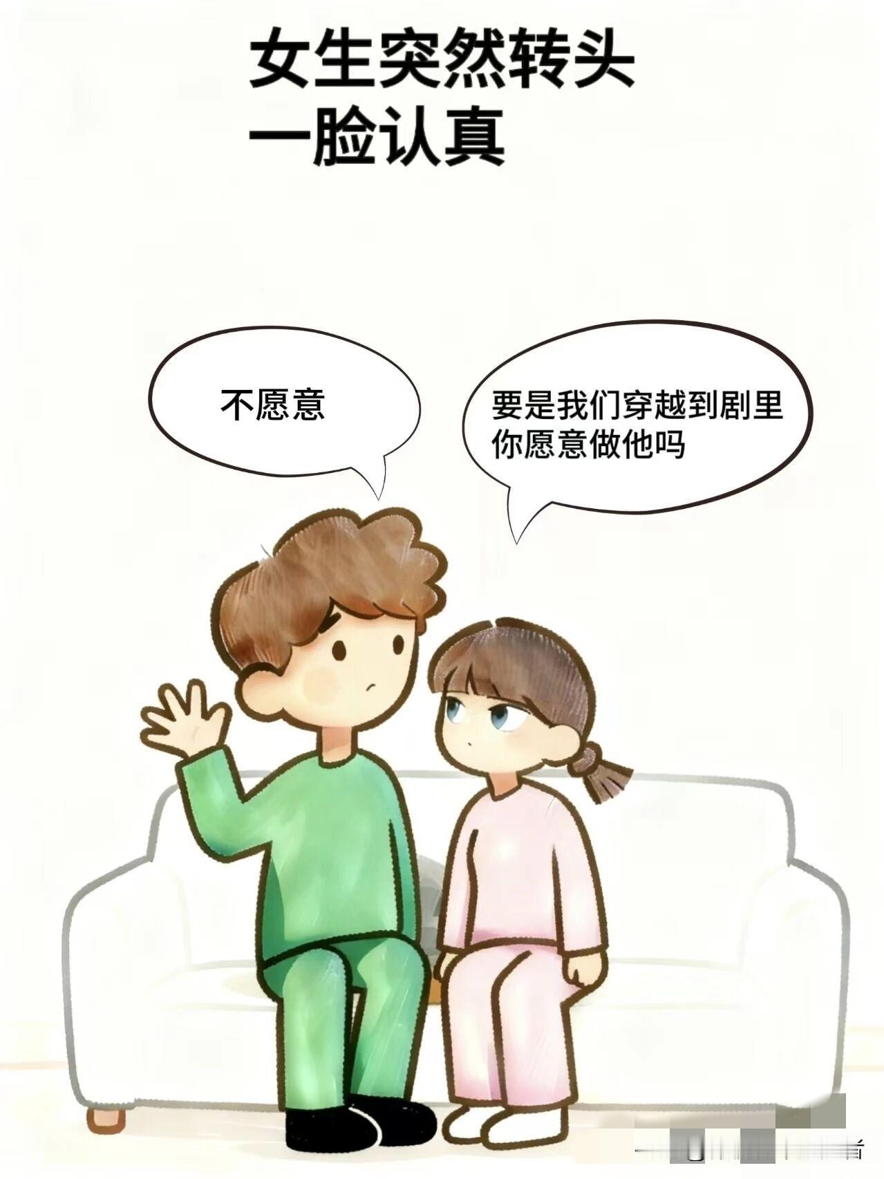 趣味漫画:女生:老公,这男主也太帅了吧,男生:嗯,还行,女生:要是我们穿越到剧里,你愿意做他吗,男生:不愿意,女生:你舍不得我呀