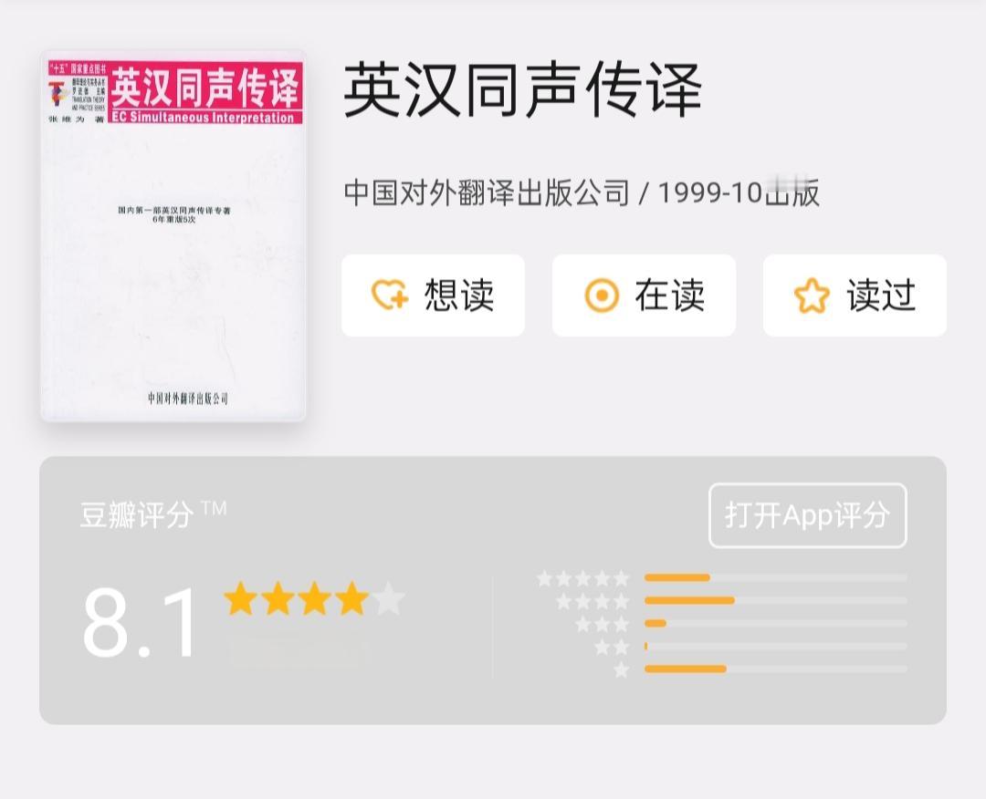 张维为教授评分最高的书。复旦大学张维为教授写了很多书,很多人可能都不知道,张教授有一本书在豆瓣的评分是相当高的。这本书的名称是《英汉同声传译》,在豆瓣的评分是8.1分,是一本评价较高的书。后面张教授写的书就没有这本书的评分高了。 有的网友打趣地说,这才是张教授的老本行;也有网友在豆瓣上是这样评价这本书的:国内英汉同声传译的开山鼻祖之作。张维为教授当时在同声传译方面的理解是超前的,这得益于他的工作经历。 张教授的这本书评分是真的高!像后来写的震撼三部曲,或者其他的一些书,与这本书的评分还有不小的差距。这有点像有名的导演拍电视剧一样,有代表作,也有评分低的作品。所谓荷花出水有高有低,大家说是不是这个道理?