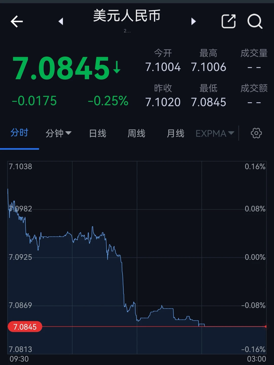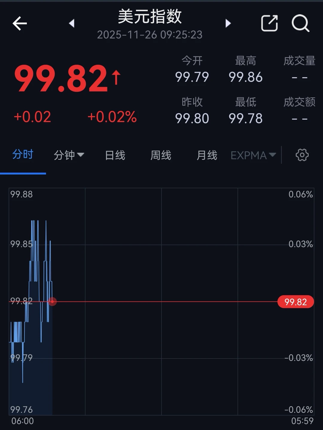 3.美元指数。代表美元自身强弱,人民币汇率会受到其牵动。