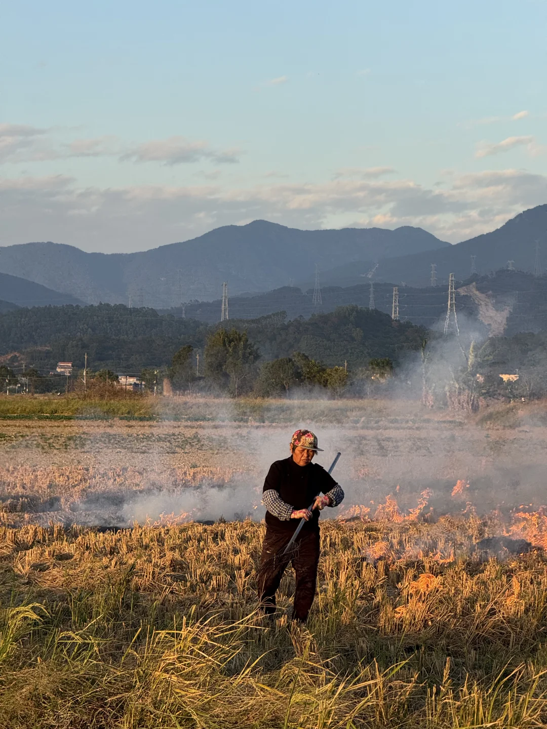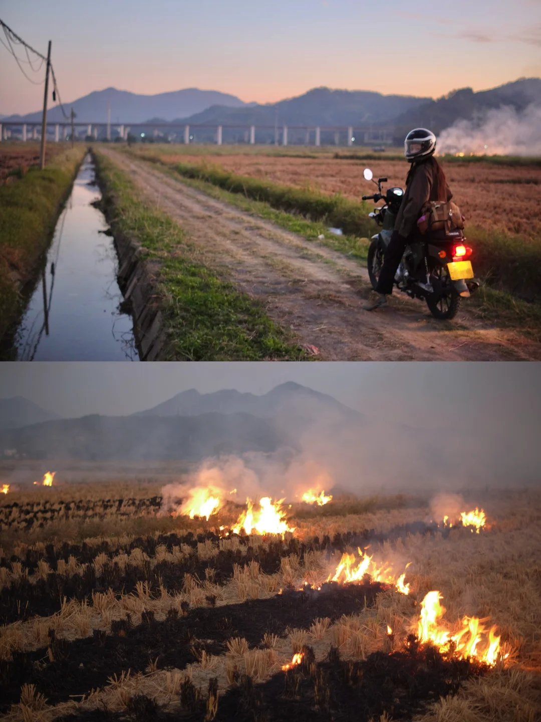 乡间小道上,当地人焚烧秸秆的浓烟仿佛有了生命——听说,今年烧了,明年会更旺。