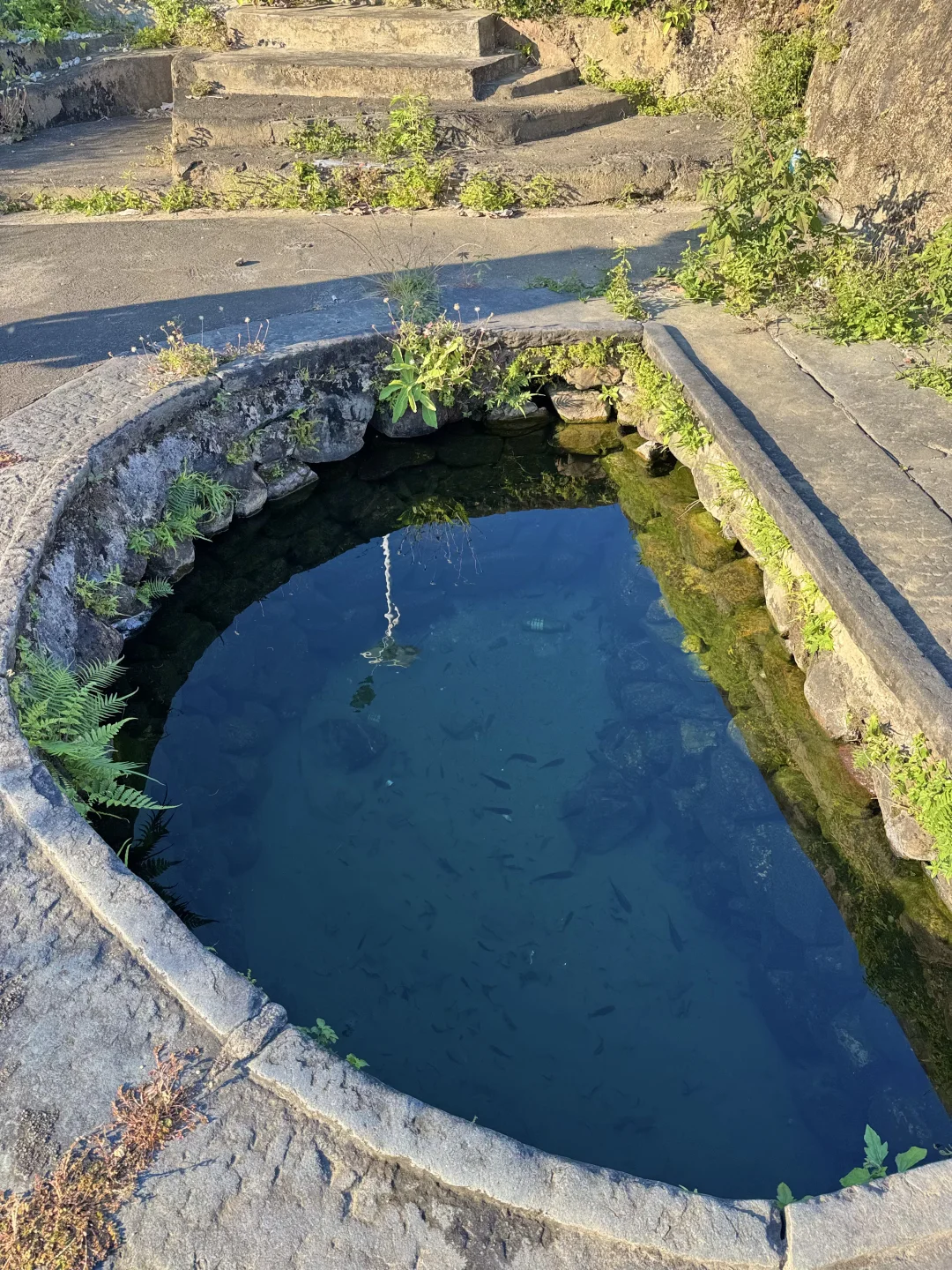 古村的老井里,鱼儿在石壁长满青苔的水中游弋