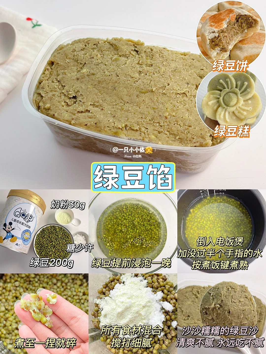 🔹食材:绿豆200g、奶粉30g、糖少许