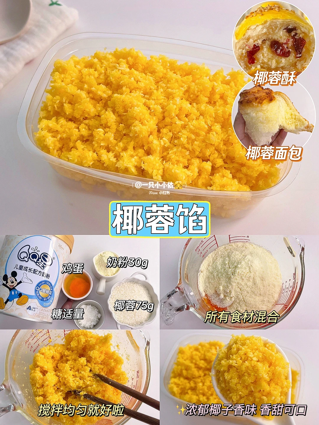 🔹食材:椰蓉75g/鸡蛋/奶粉30g/糖适量