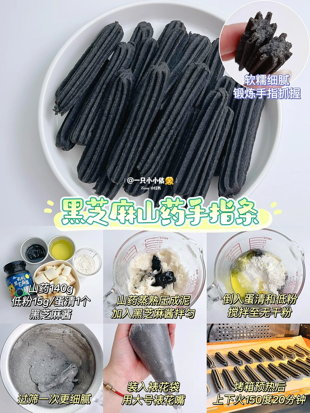 🔹食材:山药140g/低粉15g/蛋清1个/黑芝麻酱