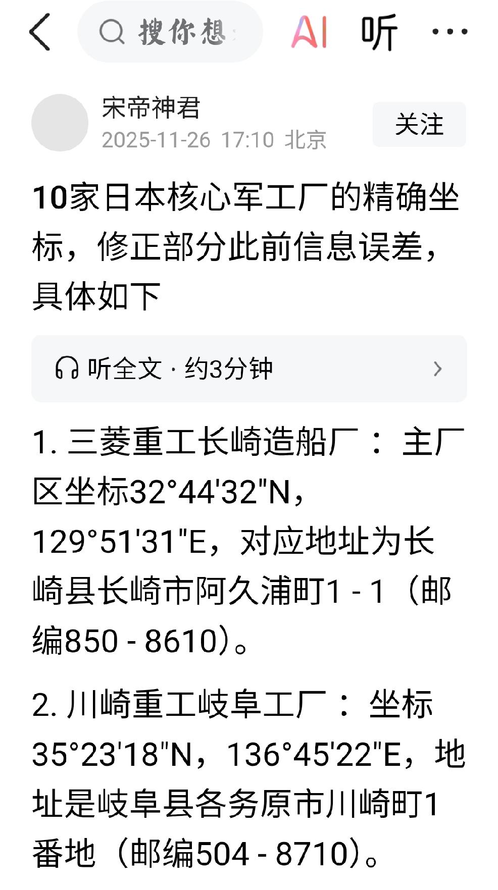 网络抗日盛况 个人观点:举例说明,包括但不限于这些例子 一,网络盛传日本的全境核电站,十分清晰 二 ,确认日方36家核心企业经贸合作终止。 三,军事基地与核心兵工厂,网络流出,经度纬度标明,不知真伪。 四,海外华人,依然是中国心,血脉力量觉醒。 反制日本,人人有责,反制手段,多种多样,迭代更新,反制力度,更深更宽更高温更高压。