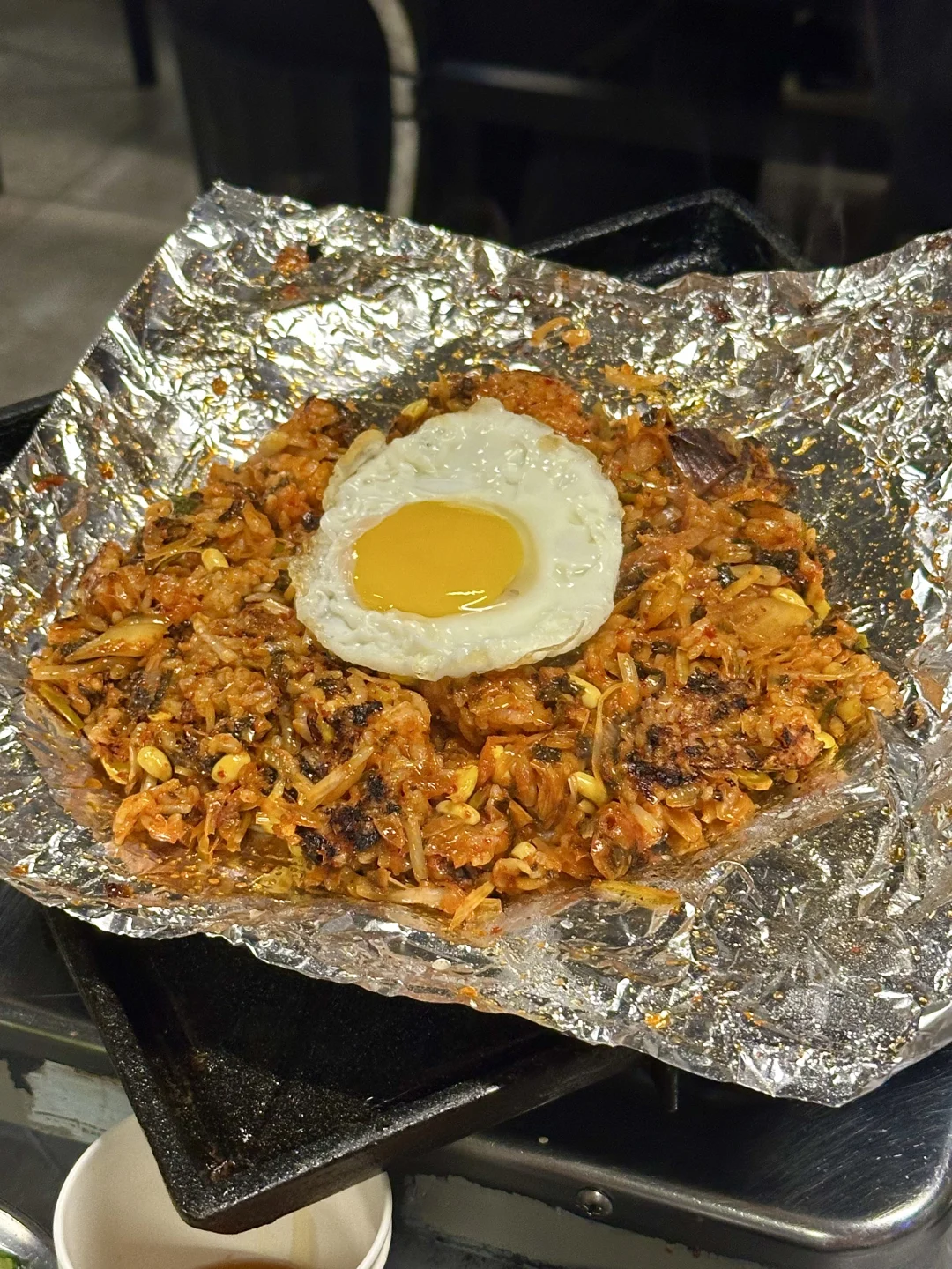 水芹菜烤肉真的惊喜到我,吃起来一点不腻而且很清爽。他家招牌冷冻五花肉一开始还在好奇是什么品种,一片一片的,没想到烤熟了超级好吃,我和好朋友连吃了两盘。这种烤肉和炭火烤肉的区别是不容易烤糊,怎么烤都好吃,油脂烤出来后香香脆脆的,也不油腻 炒饭很香 性价比也很高