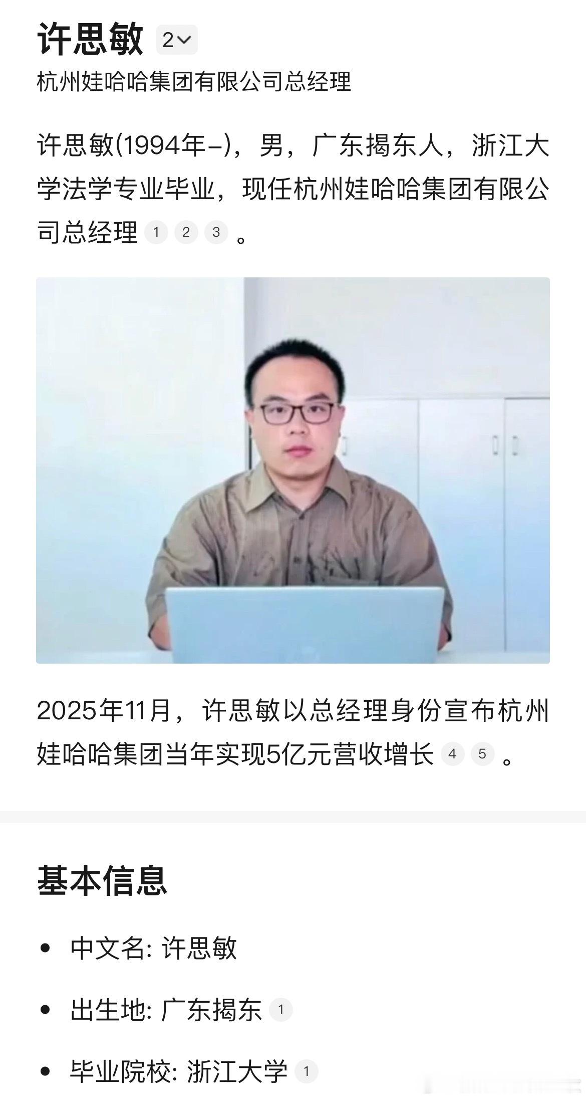 宗馥莉卸任娃哈哈集团公司董事长一直以为许思敏是位女性
