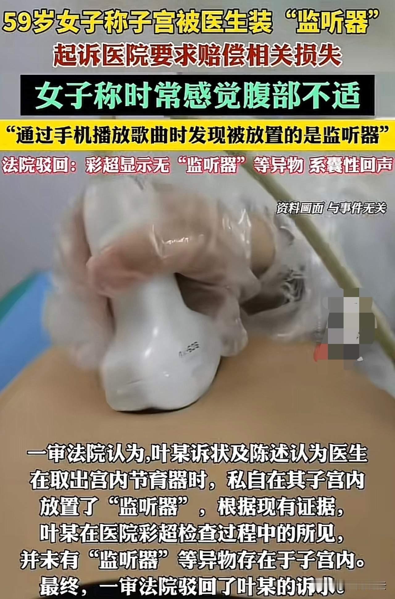 近日,辽宁一则令人瞠目结舌的新闻引发了社会热议。一位女子到医院进行避孕环取出手术,手术后却频频感到腹部不适。一次偶然机会,她用手机播放歌曲时,竟意外发现——医生竟然在她的子宫里偷偷安装了监听器! 这一听起来几乎像电影情节的事件,让女子彻底愤怒难平。她立刻将医院告上法庭,要求赔偿精神损失及身体伤害。然而,庭审结果却令人意想不到,法院并未支持她的全部诉求。 据报道,女子在术后持续出现身体疼痛,但医院诊断称并无异常,认为相关不适属于正常恢复反应。然而,女子通过手机音乐和异常信号检测设备发现了隐藏在体内的监听器,控诉医院侵犯了她的人身安全和隐私权。庭审中,医院方面辩称此事纯属误会,所谓“监听器”可能是女子手机或其他电子设备的干扰信号,并无证据证明医院工作人员有安装监听装置的行为。 法院最终判定,因缺乏确凿的物证证明医院行为违法,医院无需承担赔偿责任。此判决虽让相关人员感到意外,但也反映出司法机构在证据面前的审慎态度。 此案件引发了公众对医疗隐私安全的极大关注。医生在医疗过程中应严格尊重患者的个人隐私和尊严,任何形式的隐私侵犯都难以被社会和法律接受。同时,这也提醒患者在就医时,遇到异常情况要及时通过正规渠道维权,确保证据确凿。 这一事件无论真伪,背后的问题都值得社会深思:如何确保医疗环境中的信息安全和患者隐私?医院和医生如何建立更透明、更可信赖的医患关系?也希望相关部门能够加强医疗监管,防止此类事件发生,保障每一位患者的合法权益。节育环残留