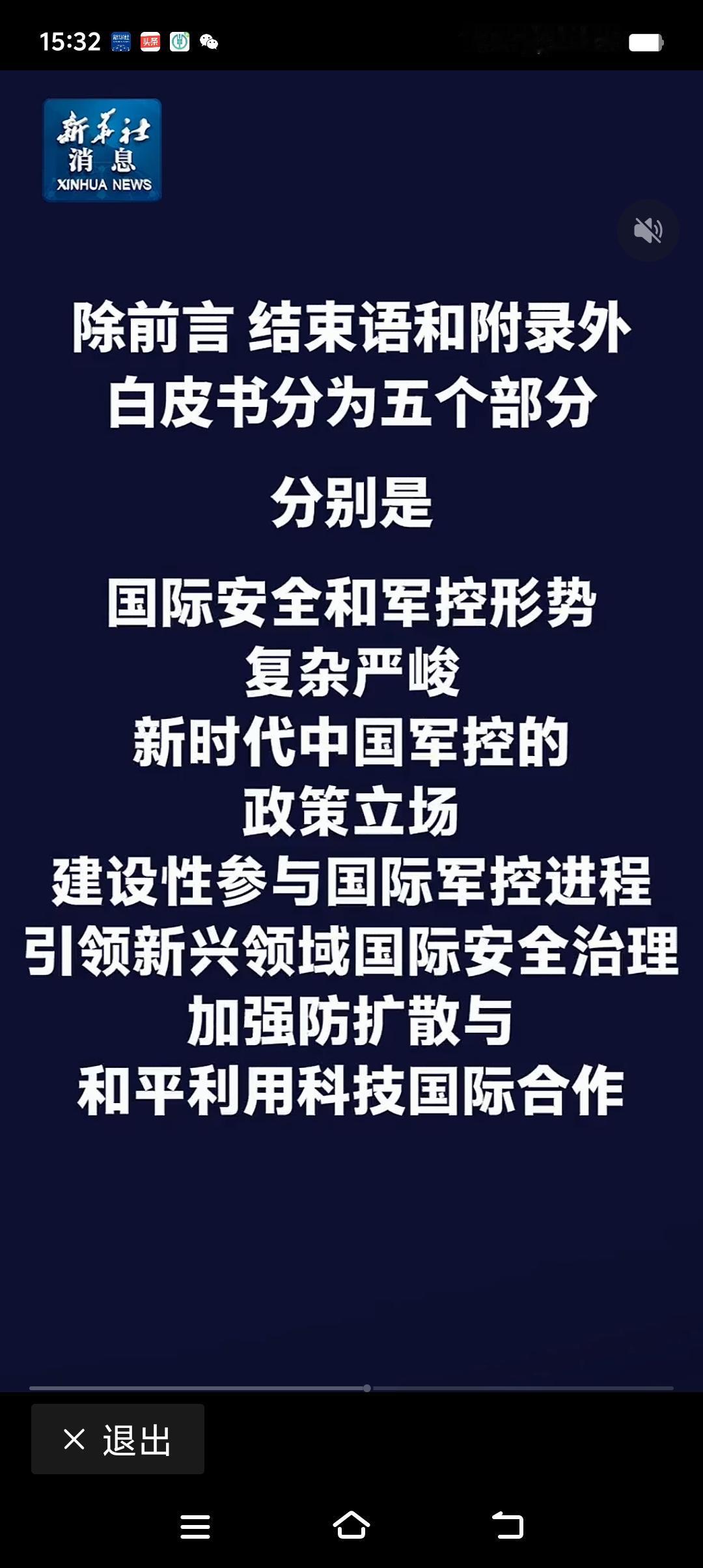《新时代的中国军控、裁军与防扩散白皮书及重大意义》 2025年11月27日,国务院新闻办公室发布《新时代的中国军控、裁军与防扩散》白皮书。时值中国人民抗日战争暨世界反法西斯战争胜利80周年、联合国成立80周年的关键节点,白皮书系统阐释中国政策实践,回应国际社会关切,为全球安全治理注入中国动能。 一、核心内容精简 (一)国际安全与军控形势研判 当前国际战略格局深度调整,全球安全形势复杂严峻。霸权主义、单边主义冲击战后国际秩序,地缘政治博弈加剧,局部冲突频发,全球军费开支屡创新高,军备竞赛持续升温。个别国家谋求绝对战略优势,调整核政策、强化军事同盟、推动“延伸威慑”,严重损害地区安全利益;导弹防御技术升级与外空、网络、人工智能等领域军事化,正改变传统战略攻防格局,给全球战略稳定带来新冲击。同时,国际军控体系遭侵蚀,少数国家退群毁约、大搞双重标准,以“防扩散”为名构筑“小院高墙”,限制发展中国家和平利用科技的合法权利,人类再次面临和平与战争、对话与对抗的关键抉择。 (二)中国核心政策立场 1. 以构建人类命运共同体为根本导向,秉持全人类共同价值,推动建立相互尊重、公平正义、合作共赢的新型国际关系; 2. 践行全球安全倡议,坚守共同、综合、合作、可持续的安全观,以维护全球战略稳定、营造共建共享的安全格局为政策核心; 3. 坚定奉行防御性国防政策,坚持和平发展道路,永不称霸、永不扩张、永不谋求势力范围,不参与任何形式的军备竞赛; 4. 保持公开透明、合理适度的国防支出,相关比重远低于军事大国,自2007年起每年向联合国提交上一财年军事开支报告; 5. 秉持公正、合作、平衡、有效的理念,反对政治胁迫与双重标准,坚持通过外交手段实现军控与防扩散目标; 6. 深度参与全球治理,批准或签署20多个多边军控条约,与20多个国家和国际组织建立磋商机制,维护国际军控机制权威性。 (三)关键实践与治理主张 1.传统领域军控:核领域倡导全面禁止和彻底销毁核武器,恪守不首先使用核武器承诺,推动核大国承担特殊优先裁军责任,推进核试验条约履约筹备,支持谈判缔结“禁止生产核武器用易裂变材料条约”;同时建设性参与生物、化学、常规武器等领域多边进程,认真履行相关国际条约义务。 2.新兴领域治理:主张以联合国为主渠道,推动形成广泛共识的外空、网络、人工智能治理框架与标准规范,增强发展中国家代表性和发言权,防范新兴技术军事化与新军备竞赛,守护科技发展的和平属性。 3.防扩散与科技合作:加强自身防扩散能力建设,推动构建公正合理非歧视的国际防扩散秩序;反对泛化国家安全概念、滥用出口管制,平衡防扩散与科技和平利用,维护发展中国家正当发展权利,促进技术交流共享。 二、发布重大意义 (一)对冲安全风险,注入和平确定性 在全球安全赤字加剧、战略稳定受冲击的背景下,白皮书以明确政策立场和务实行动清单,展现中国维护世界和平的坚定决心。其“不称霸、不扩军”的承诺与透明化的国防实践,有效对冲了阵营对抗与军备竞赛风险,为各国应对安全挑战提供稳定预期,彰显了负责任大国的历史担当。 (二)完善治理框架,贡献中国方案 白皮书将全球安全倡议深度融入军控实践,倡导“共同安全”而非“绝对安全”,反对单边退群毁约与双重标准,为破解多边军控体系困境、完善全球安全治理提供了新思路。其兼顾各国安全关切与发展权益的主张,提升了发展中国家在国际军控事务中的话语权,推动全球治理向更公平合理方向发展。 (三)填补治理空白,引领规则构建 针对新兴科技带来的安全挑战与规则缺失问题,白皮书提出兼顾安全与发展的治理路径,明确反对新兴领域军事化,为规范科技军事应用、避免新军备竞赛奠定基础。这一前瞻性主张,回应了国际社会对技术向善的共同期待,为全球新兴领域安全治理提供了重要指引。 (四)彰显战略定力,凝聚国际共识 白皮书通过系统梳理政策实践,用事实证明中国军队发展是世界和平力量的壮大,有力驳斥了“中国威胁论”。其倡导的多边主义、对话协商等理念,契合全球南方国家自主参与安全治理的诉求,有助于凝聚国际社会维护和平的共识,推动各国摒弃零和思维,携手筑牢和平发展之基。 白皮书的发布,既是中国对国际社会共同呼声的积极回应,也是推进人类和平与发展事业的重要实践。在历史的关键十字路口,中国愿与所有爱好和平的国家一道,巩固以联合国为核心的国际军控体系,携手构建人类命运共同体,为建设持久和平、普遍安全的世界注入持久动力。