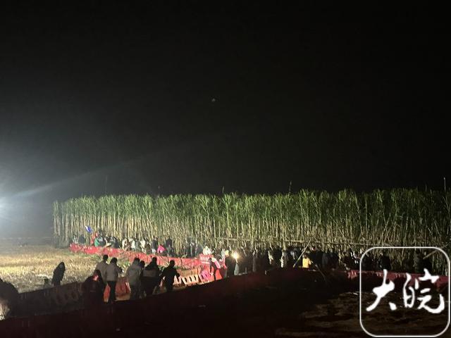 大皖新闻记者见到童鹏飞时,他正忙得不可开交:调试夜间要用的应急照明灯、摆放隔离桶、协调村民与志愿者工作,还要在密集的摄像机与麦克风之间见缝插针地回应各路媒体、自媒体博主的提问。镜头前的他强打精神,却仍掩不住频频哈欠与满身疲惫。整个下午,他仿佛上紧了发条,穿梭在甘蔗地的各个角落,事无巨细地安排每一项工作。