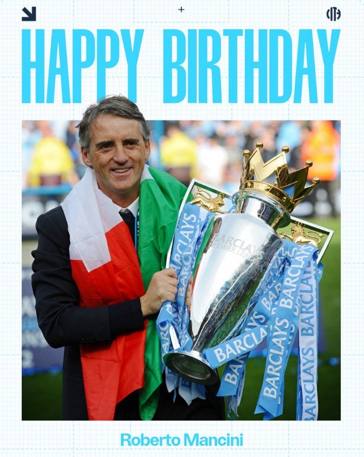 直播吧11月27日讯今天是意大利名帅曼奇尼61岁生日,曼城官推也晒出曼奇尼昔日手捧英超冠军奖杯的照片,为其送上生日祝福。