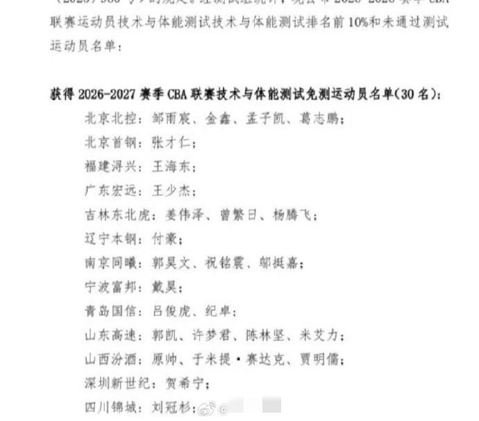 CBA有30名球员,获得下赛季体能免测机会,陈林坚在里面就很醒目 CBA有20家球队,才有30名球员,因为体能优势很明显,最终取得后续一年免测的奖励,其实意义不重大,跟接下来打得多好,关系也不大,因为外援普遍身体更强壮很多。因为才有30名球员没有通过,绝大多数球员体测很轻松,那么这就没什么真的吹捧,当然CBA还是洗白了自己,不体测的话,怎么给年轻球员棒喝呢?