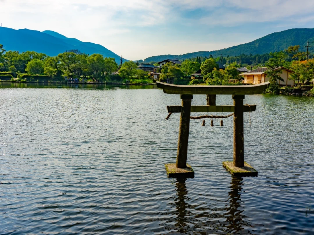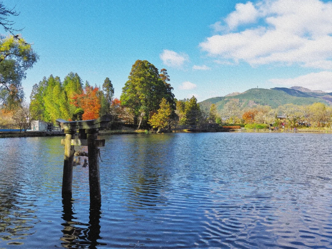 🎉景点名:金鳞湖 ✈️地址:大分県由布市湯布院町川上1561-1 🔍值得看: 🌈金鳞湖其实不大,不客气的说就比池塘大那么一点,但这毫不影响它的神奇。金鳞湖的西边涌出的是温泉,而东边涌出的确是清水,湖水温冷各半。 温泉和清水的温度差使得湖面经常飘渺着浓雾,迷蒙升腾中如诗如画大的梦幻,吸引了很多文人画家。 🌈传说: 有位儒学家来这儿时,落日余晖下,一边在「下汤」泡着露天温泉,一边眺望湖泊时,看见有鱼跳上湖面。刚好夕阳照射,湖面金色闪闪发光,像是片片的鱼鳞,从此便称此湖为金鳞湖。” 🌈沿着湖畔步道绕湖而行,不同角度观看湖面,极尽变化。“湖光山色的恬淡静谧,清澈的湖水中游动的鱼儿,湖畔的神社,湖中的鸟居,绿波水色中透着丝丝禅意…… ”; 🌈秋天来此观光很不错,枫叶的红与银杏的黄,是一抹缤纷的色彩,拍照很出片的。 🌈这儿有晨露,薄雾,氤氲的温泉水,安静而闲适,再来一杯茶一本书,或者只是静静坐着,就可收获内心的安宁。