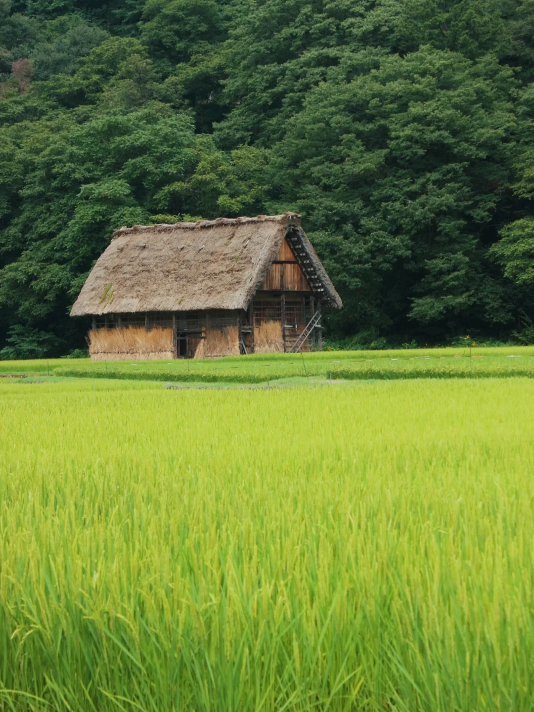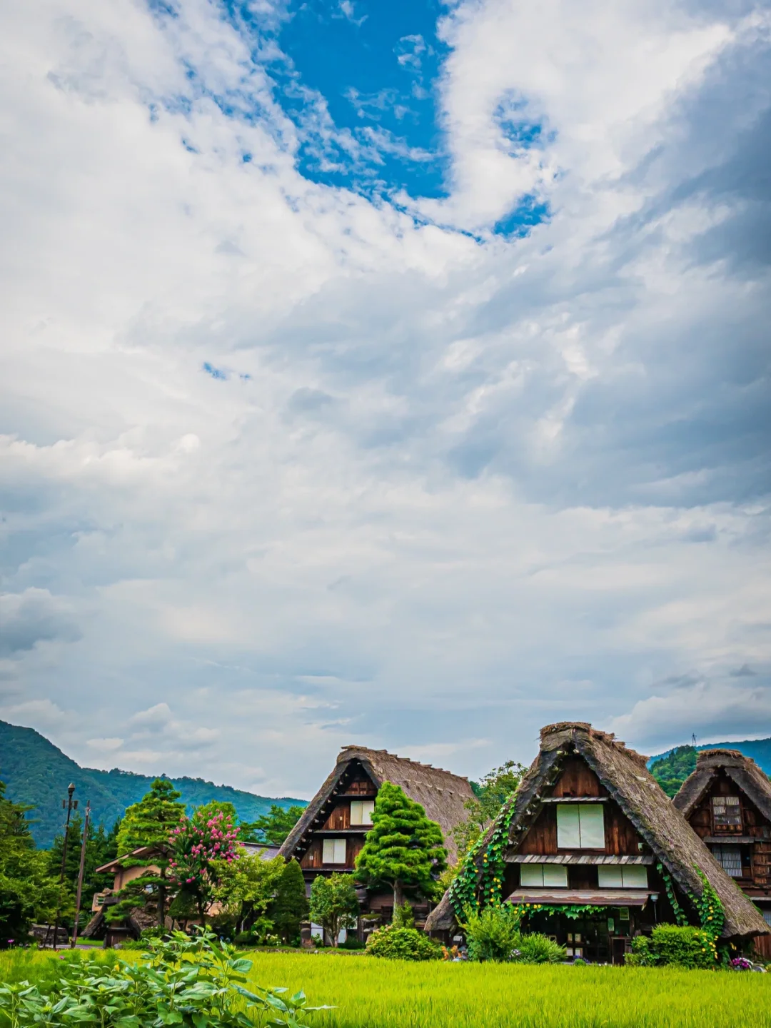 🌈还记得那个小小的村落吗,因合掌造而闻名,被登录为世界文化遗产。100多栋合掌造连成一片,四面环山,水田纵横。合掌造400多年的历史,建造不使用任何钉子,屋顶倾斜60度,冬天可以让雪滑落避免积雪,是冬暖夏凉的小房子。