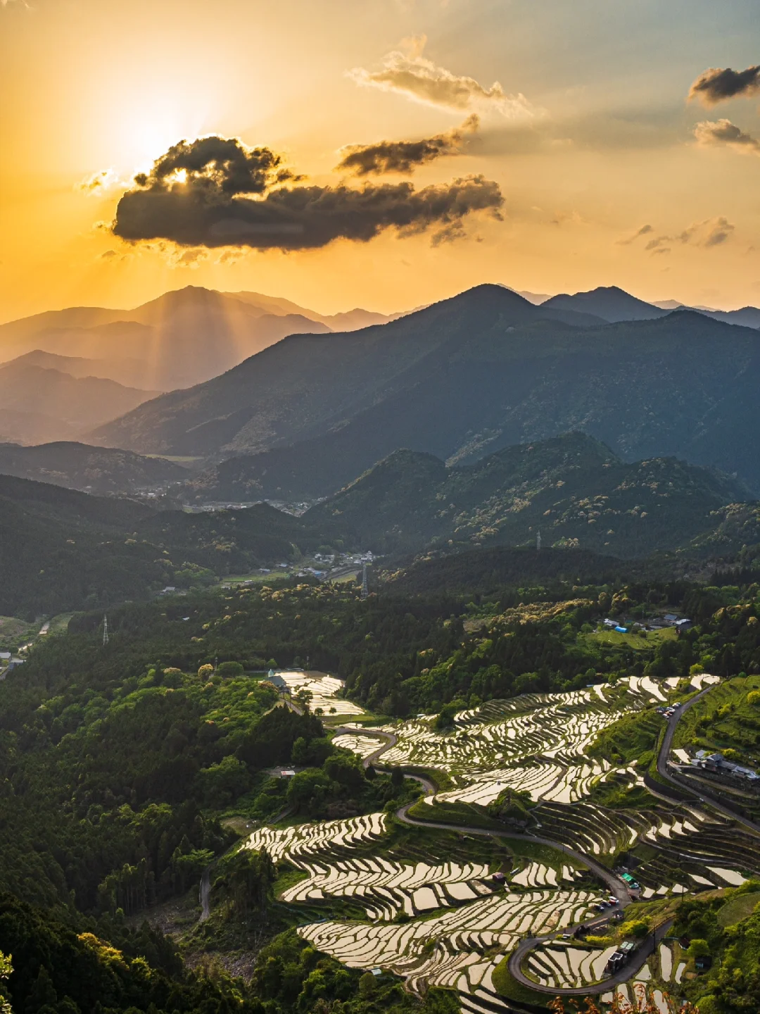 🎉景点名:丸山千枚田 ✈️地址:三重県熊野市紀和町丸山318 🔍值得看: 🌈梯田嘛,还能美成什么样子?相信你见过丸山千枚田之后就不会这么问了 🌈大大小小的梯田加起来,总共1340块,数量甚是可观啊 🌈春夏绿意浓浓,秋季金灿灿,冬季积雪千层田,不一样的景观很是有趣 🌈最最吸引人的,是每年7月份会举行“送虫”活动,驱散害虫,祈祷丰收,会在梯田周围点灯,点点灯火像是萤火虫般闪耀在田间,很是梦幻美丽! 🌈厌烦了人潮拥挤的旅途,来田地间呼吸一下新鲜空气也不错啊~