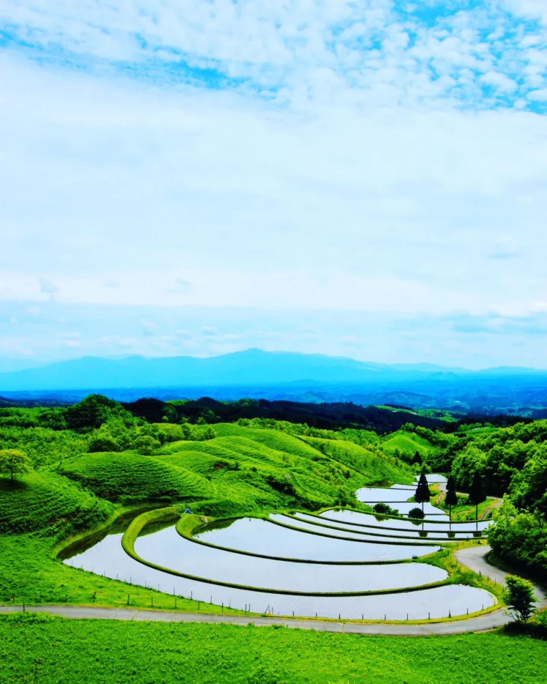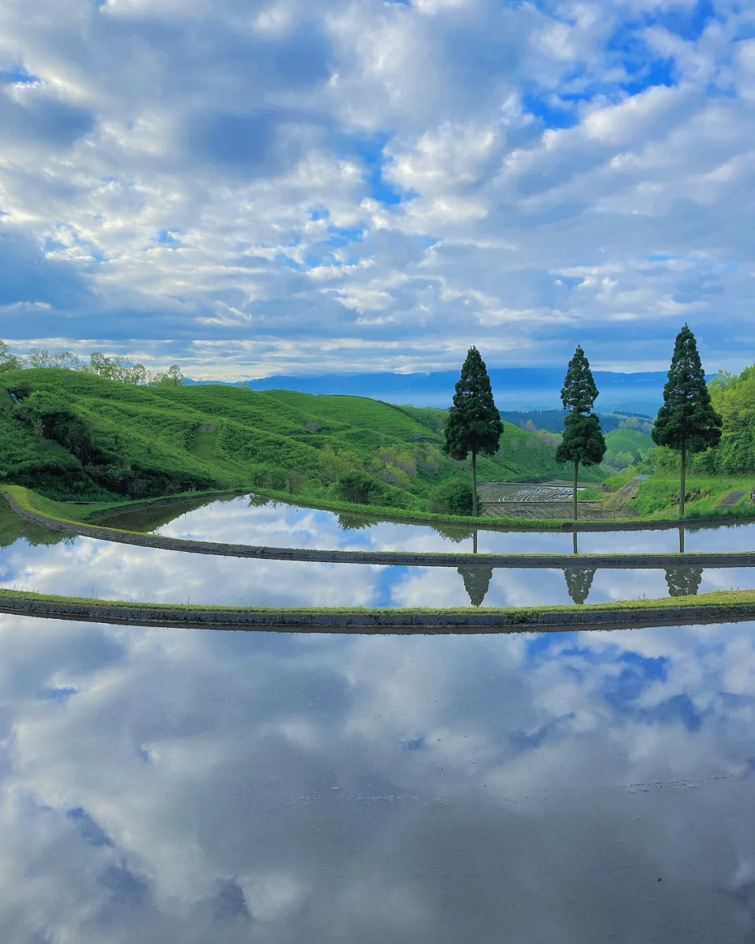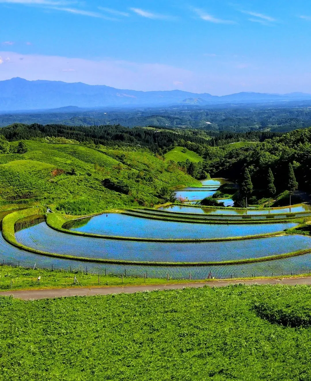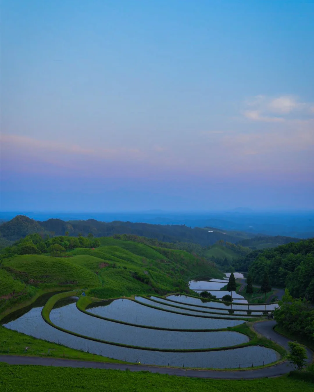 🎊景点名:扇棚田 💌地址:熊本県阿蘇郡産山村大字産山字下山吹2621-8 值得看: 梯田想必大家不陌生吧,地理课本上应该有隆重介绍过。但是,这样的水稻梯田呢?我真是第一次看到。夏季稻田水满,一块块、一层层,很是漂亮 不得不说这真的是人类智慧的结晶。巧妙利用地形和有限的土地,解决粮食种植问题,更是创造出一片独特的风景 忘记说,秋收时节金灿灿的稻田又是另一番景象哦 *图片源自网络