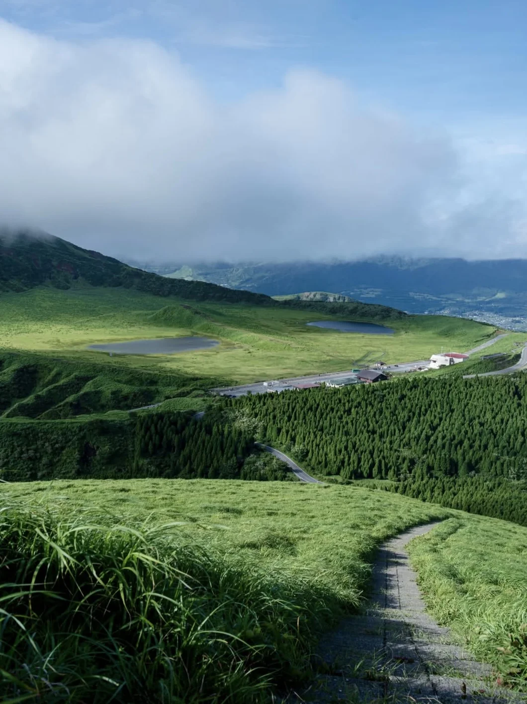 3️⃣大观峰 —— 观赏日出和云海的超棒地点,能看整个阿苏火山群像一幅巨型山水画铺开。