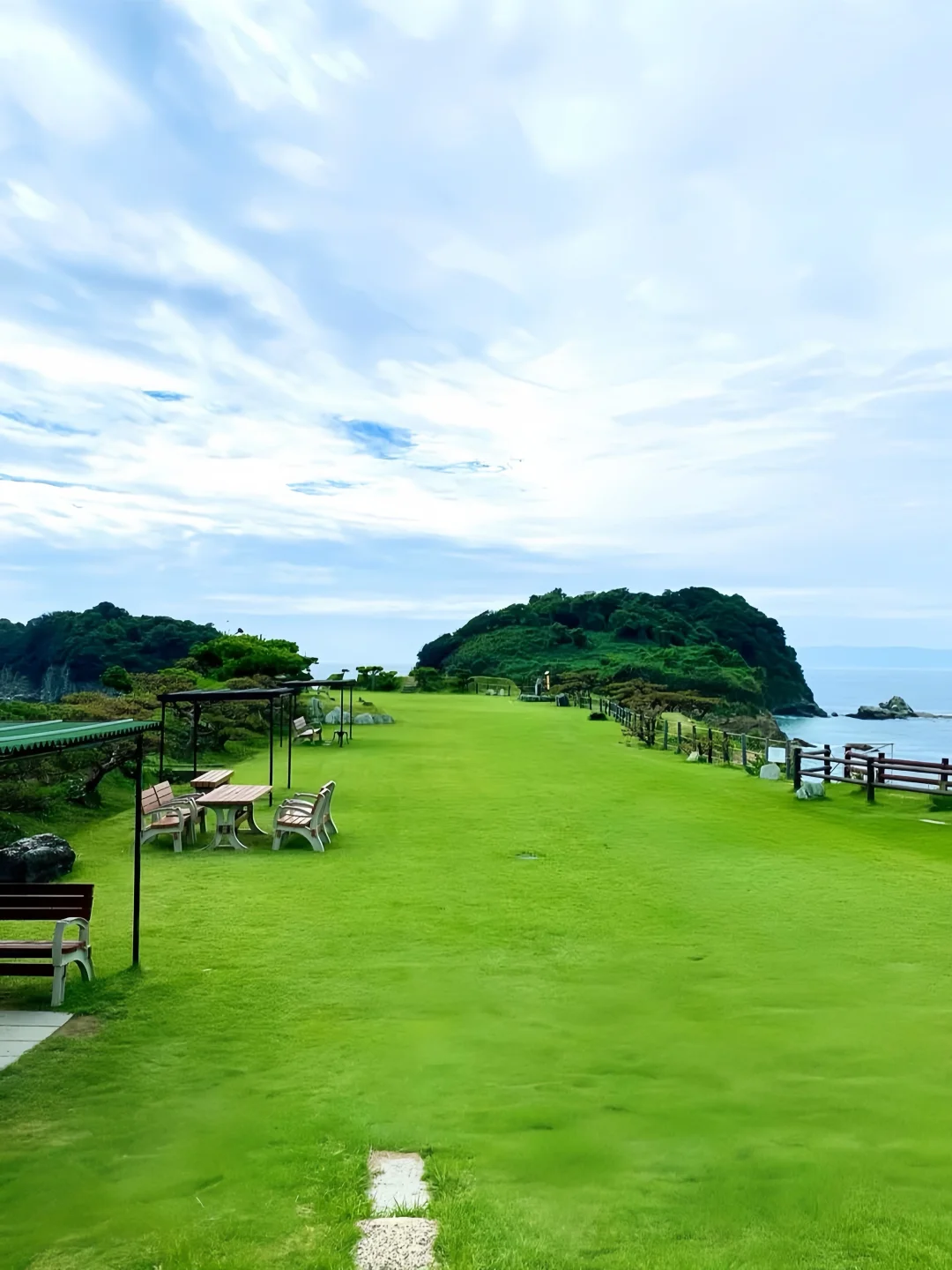 🪑傍晚时分,坐在石凳或草坪上,看夕阳慢慢沉入海面,天空染成橙红色。安静到只剩下浪声,氛围感满满。