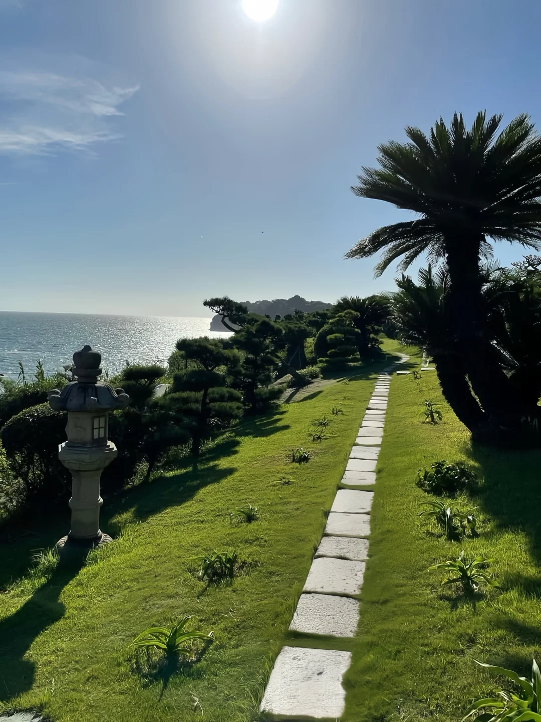 走在草坪上,一边是古老松树庭院,一边是辽阔太平洋,视野开阔到仿佛伸手就能碰到海风。