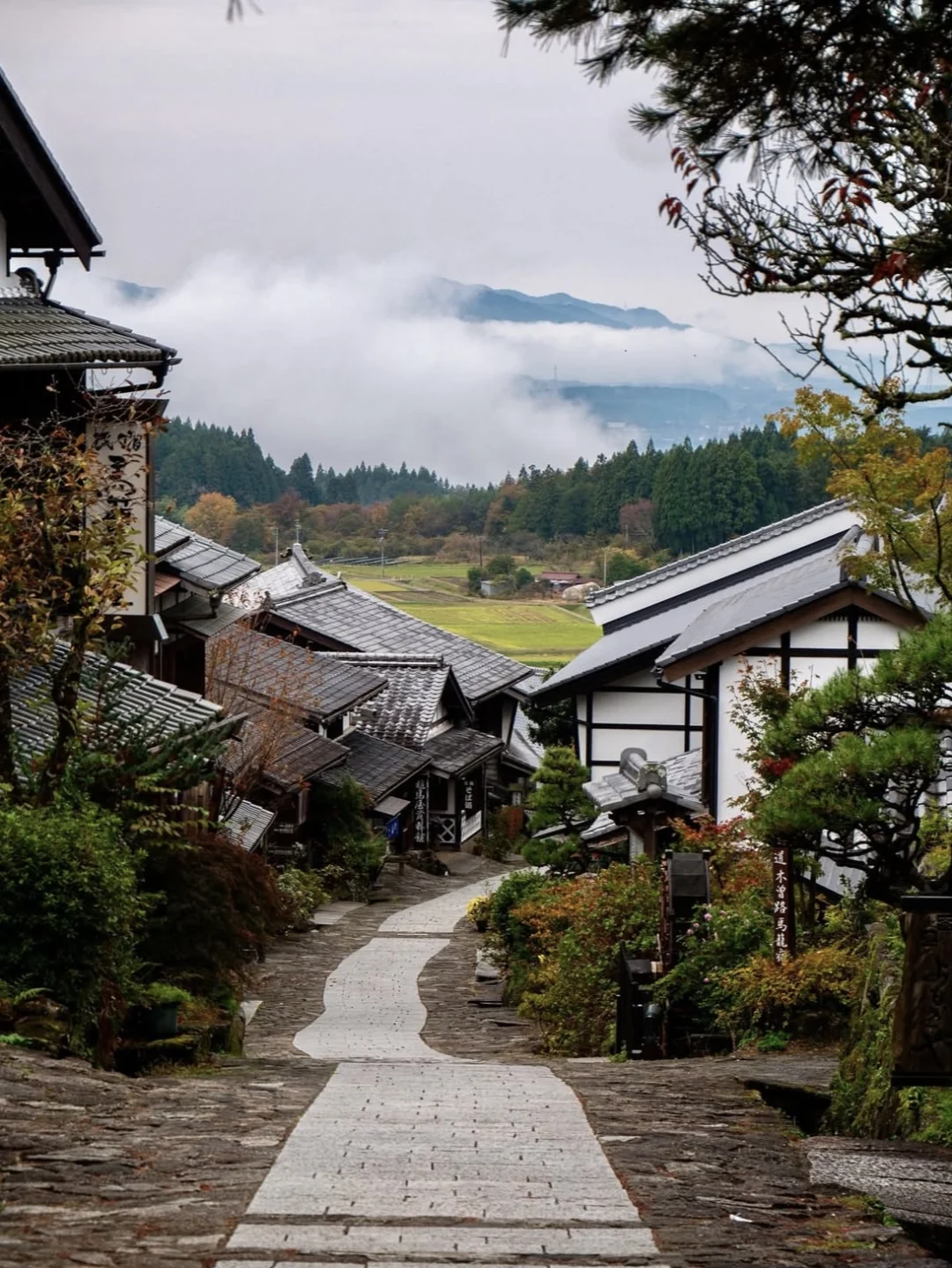 正因如此,这里不仅是拍照打卡的美景地,更是徒步爱好者的宝藏路线。沿着历史悠久的中山道,从妻笼宿出发,走向邻近的马笼宿,不仅能深度感受江户旅人的步伐,也能领略沿途自然风光与人文风情。
