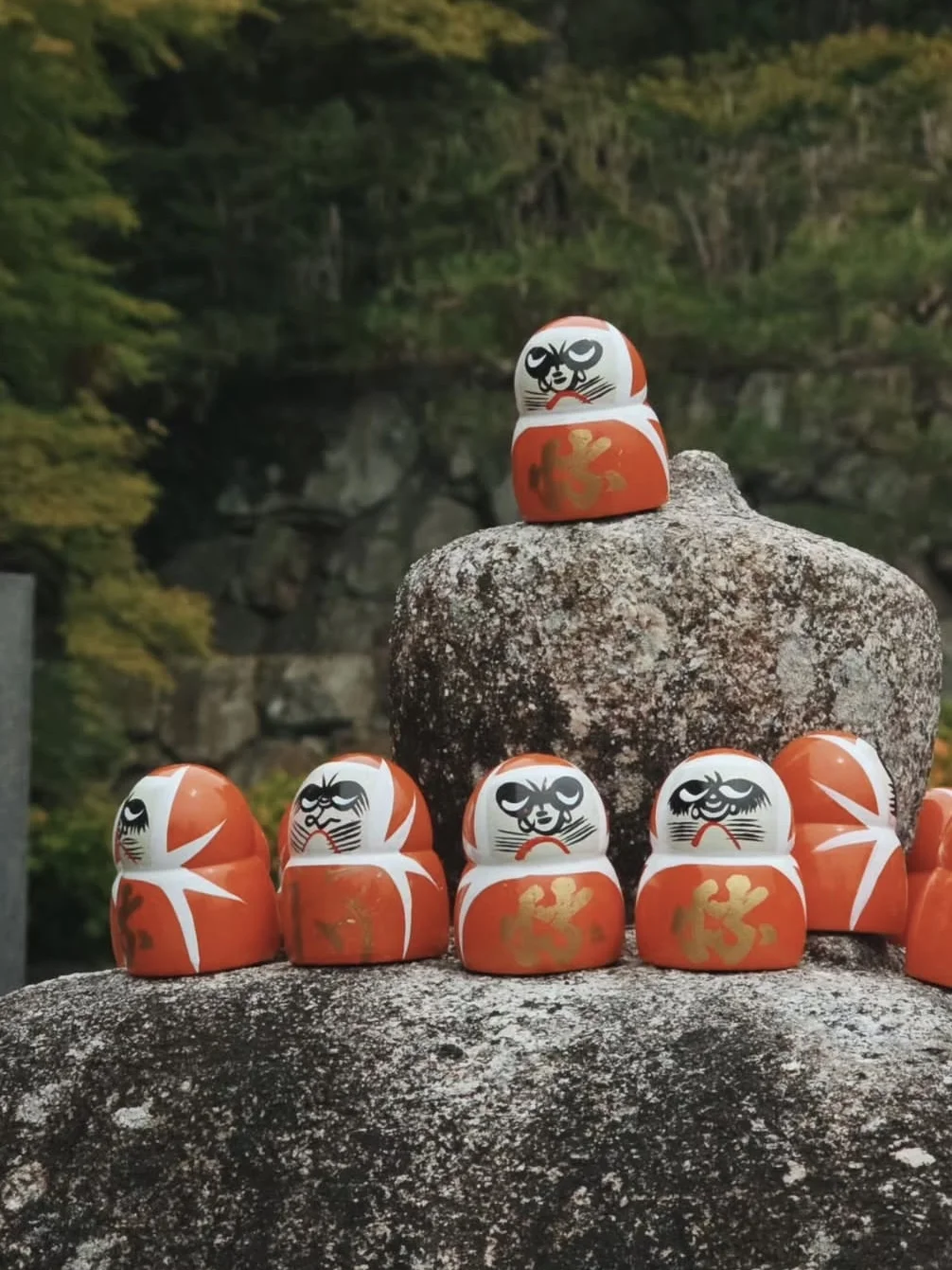 🏯胜尾寺(Katsuo-ji) 距离瀑布不远,是一座求胜运的古寺,到处是小达摩。摄影氛围感拉满,是我私心很爱的地方。