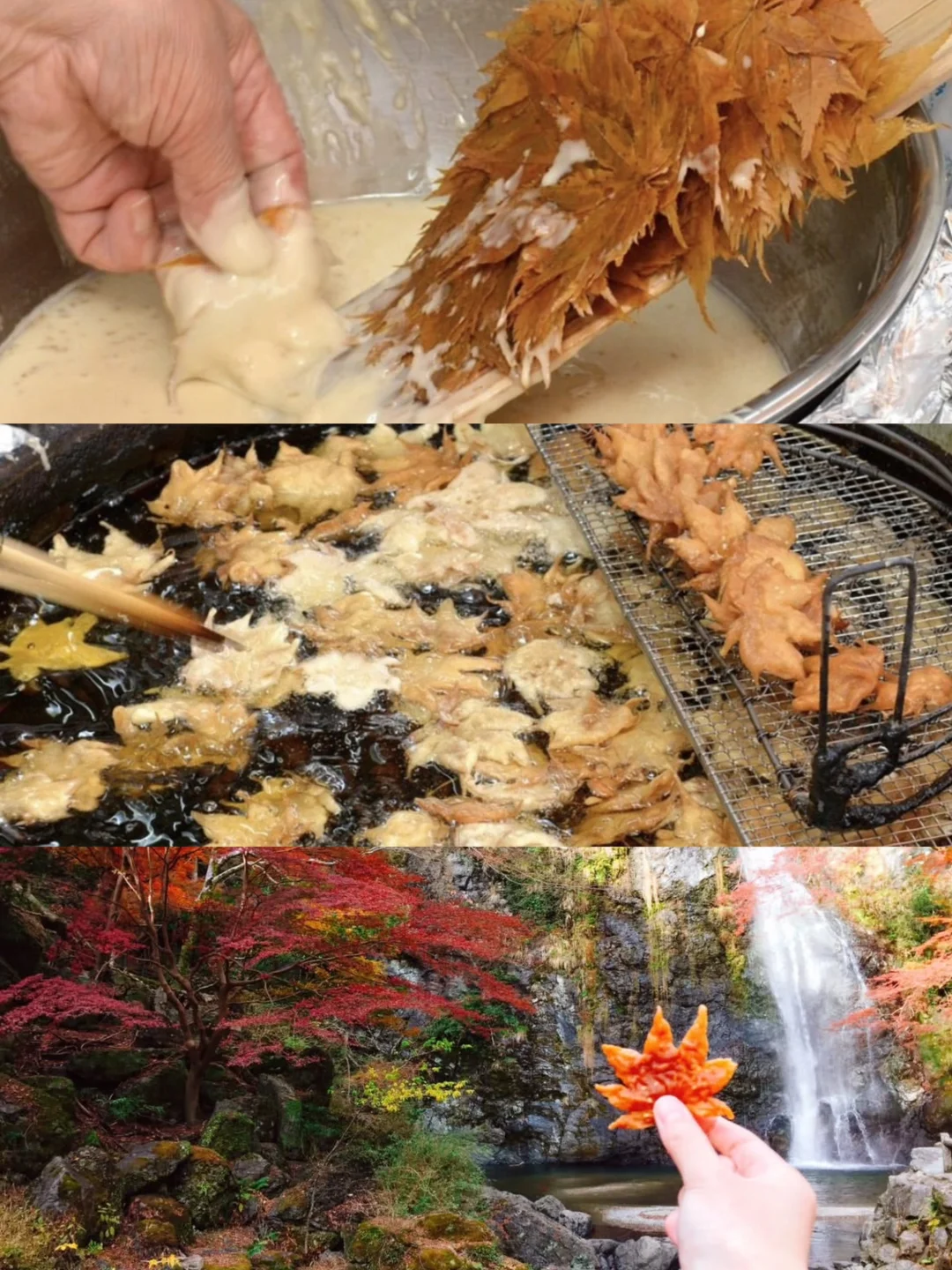 🥮炸红叶天妇罗 商店街上可以买到“炸枫叶”,这是当地的特色点心,外脆内香,超特别。