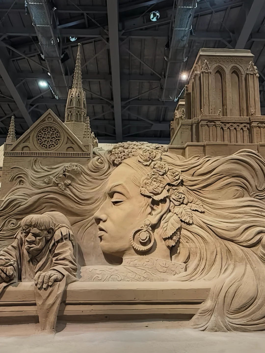 里面的作品都由沙子雕成,走进去的第一眼就会忍不住感叹:原来细软的沙砾,也能被雕刻成这样的艺术呀。