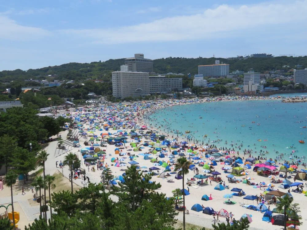 🎉 景点名:白良滨 ✈ 地址:和歌山県西牟婁郡白浜町864 🔍 值得看: 🌈 夏季,更想来海边旅游吧,爽快、舒适、缓解燥热。 🌈 作为东方夏威夷,白良滨可以说是名不虚传。白色的沙滩,湛蓝的海水,还有椰子树!只是看一眼,就被这美丽的海滩景色所吸引。再看看沙滩上的日本游客,外国游客,可见他的受欢迎程度真的不一般; 🌈 夏季就来踩踩细沙,泡泡海澡,晒晒日光浴;冬季这儿还有著名的温泉;都是享受级别的旅游体验。 🌈 各种活动也不少,花火大会、灯笼节;沙滩瑜伽、铁人三项等等,如果能够恰巧碰到,也是不错的体验。 *图文参考网络