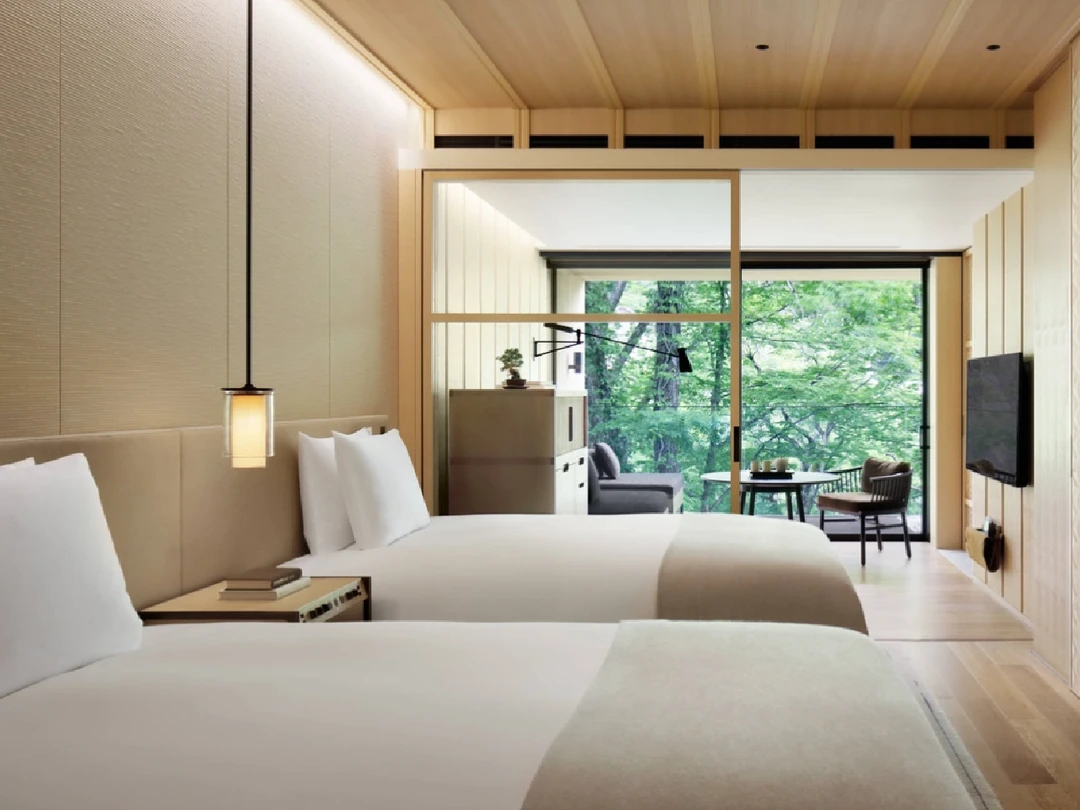 🌈酒店房间兼有和式风格和西式风格,温泉是一大特色。此外还有全方位的水疗中心、健身房等各种设施。酒店内装修高雅、环境清幽,还有很多艺术设计体现日本的历史文化、传统技艺。