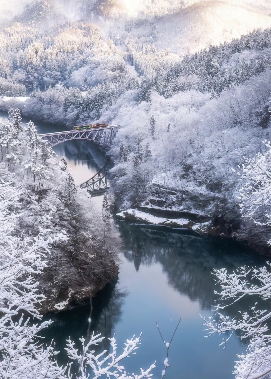 [烟花R]景点名:JR只见线 [飞机R]地址:日本福岛县 值得看: [彩虹R]有些日本的铁路和车站,总能激起无线的浪漫~JR只见线就被称作“时间最浪漫的铁道路线” [彩虹R]由上往下俯瞰“只见川第一大桥”的山谷铁桥画面,映入眼帘的白雪景象,让人惊叹它的美丽 要想拍到这浪漫绝美的景象,需要找到拍摄地点哦,提前做做功课出发吧!实在不行现场询问车站的工作人员吧~ [彩虹R]当然,除了由上往下俯瞰的画面,还有几个拍摄角度也是没得让人屏息凝视,尤其是铁桥与电车同时入境的画面,让人有种等待美好慢慢接近的感觉,充满希望 [红色心形R]这个冬天来一场穿越冰雪拥抱浪漫的旅行怎么样!