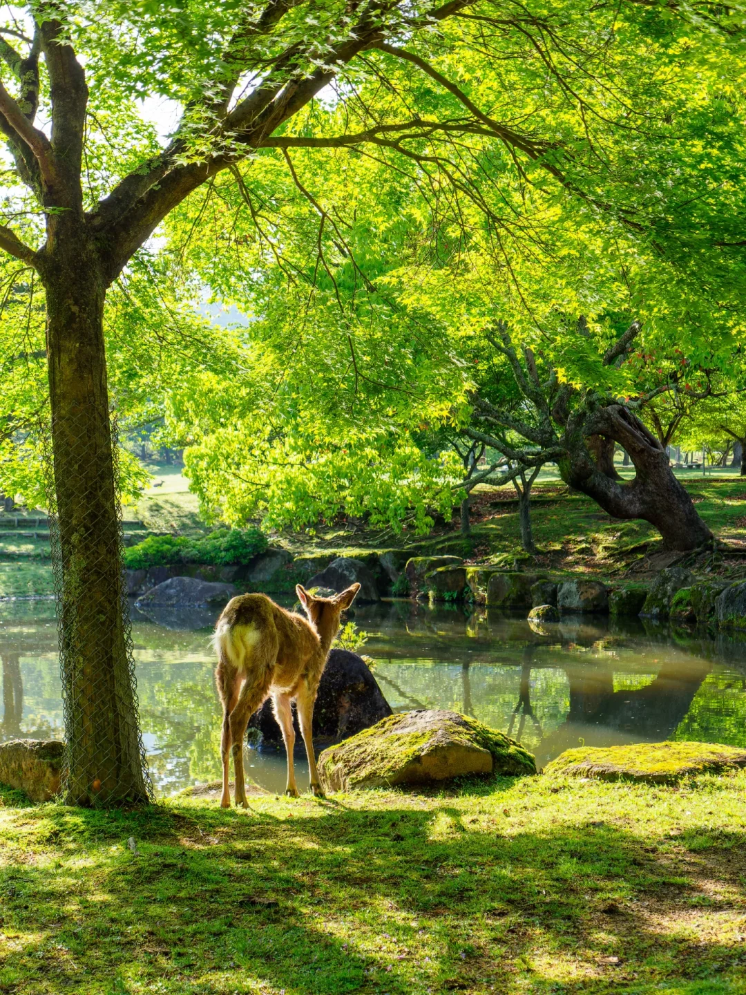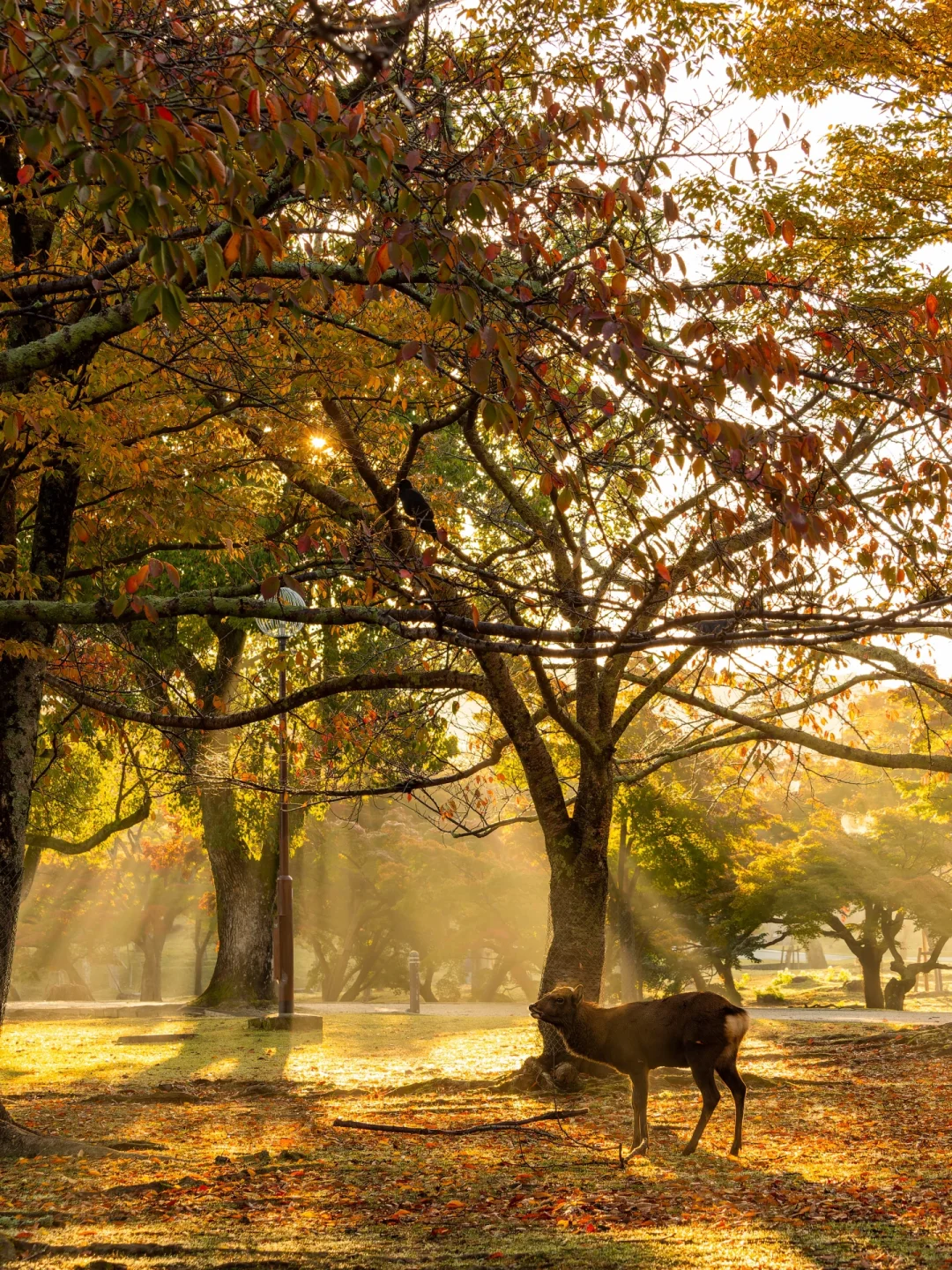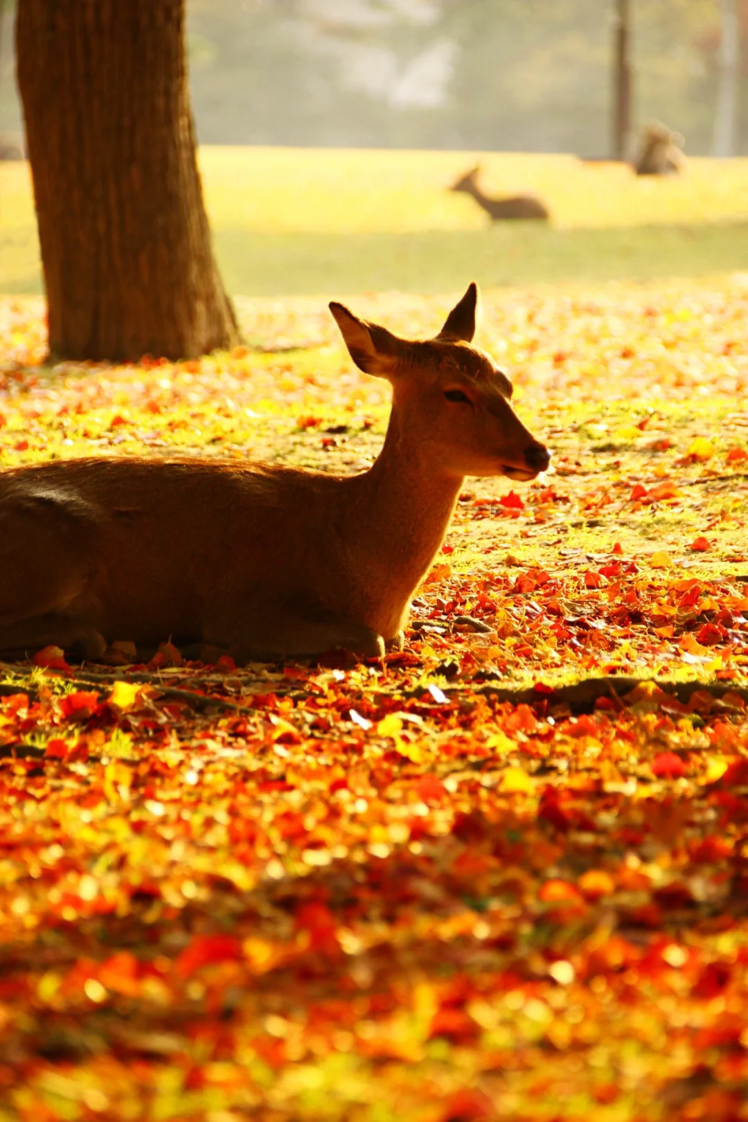 [烟花R]景点名:奈良公园 [飞机R]地址:奈良市登大路町30 值得看: [彩虹R]奈良公园很出名,因为宝藏景点太多了!但要说最最出名的,还是C位的小鹿们。小鹿因温顺而走红。您可以走到鹿的旁边与它们合影留念,或购买路边出售的鹿饼干进行喂食…不过奈良的小鹿也有非常野性的,喂的时候还是要小心。每次去都很期待和小鹿的互动~ [彩虹R]走累了,可以来猿泽池,也是动物爱好者喜爱的景点,您可以坐在长椅上,看着乌龟和鲤鱼自在悠游。许多人会在这里拍一张奈良的经典照片,以池水为镜,反射出兴福寺的宝塔和美丽的树木。 [彩虹R]这里还是摄影爱好者的乐园,优美的公园和上镜的建筑使得奈良市中心吸引了大量摄影师前往。等待太阳逐渐落山时,光线也非常美丽。 *图文参考网络