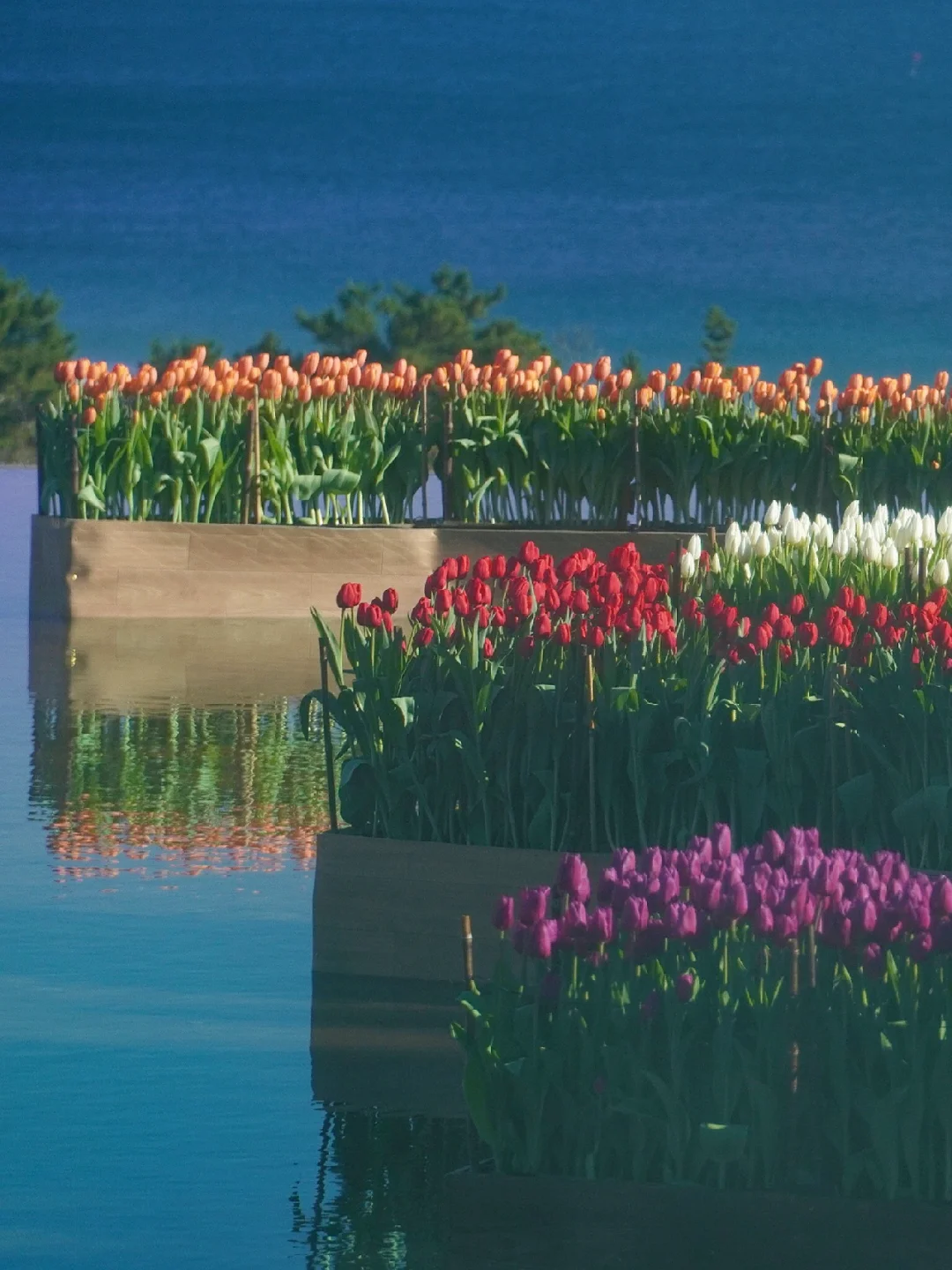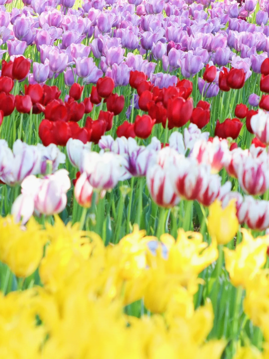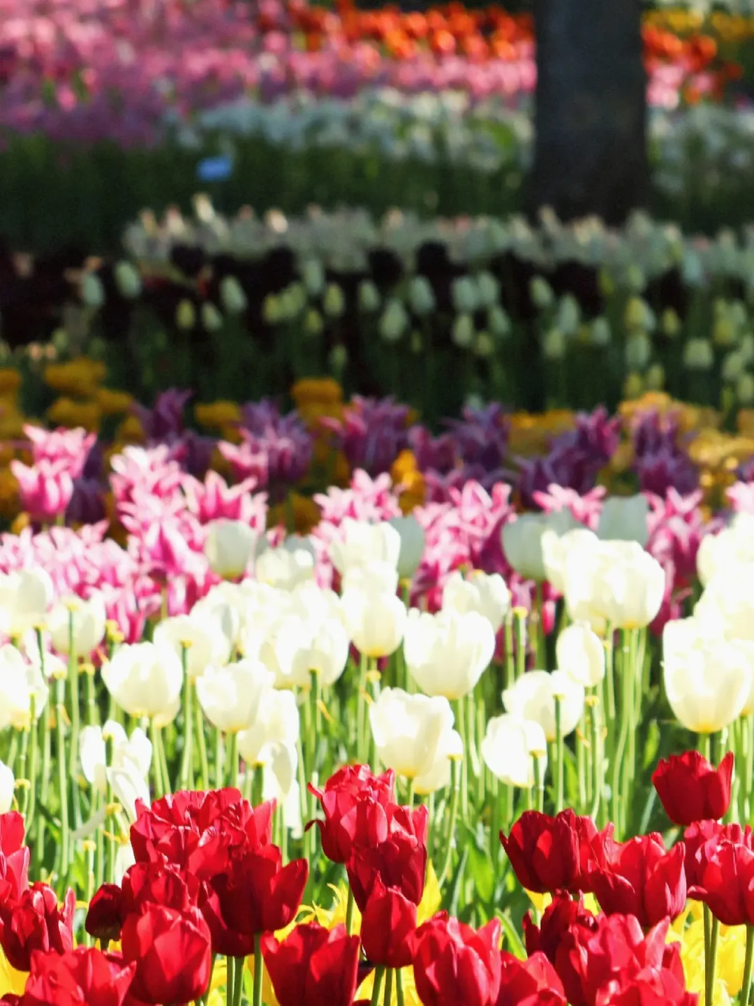 [彩虹R]太平洋岸边的花海,春季的粉蝶花、水仙、郁金香,初夏的罂粟花、玫瑰,盛夏的百日菊、向日葵,秋季的扫帚草、大波斯菊,冬天的冰郁金香等,一年四季都可以欣赏到五彩缤纷的花卉。大概四月份左右,郁金香🌷 就要盛开了,这可爱的小花,最最吸引人的是色彩的搭配,各种颜色的郁金香一次盛开,很是让人喜爱~