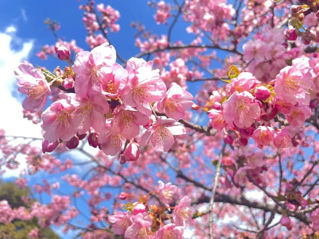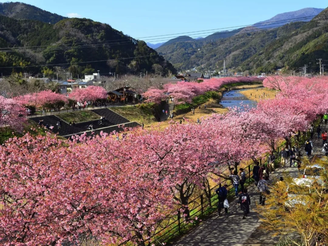 [烟花R]景点名:河津川樱花祭 [飞机R]地点:静冈市加茂郡河津町笹原 值得看: [彩虹R]不被疫情困住的春天,太美好了,我要赏遍春天的樱花🌸 ,夏天的翠绿,秋天的枫叶🍁 ,还有冬天的雪。 [彩虹R]樱桃首开当属河津樱,河津樱祭璀璨开幕——2月1日至3月5日,现在来正是好时候。就喜欢樱花热烈的绽放,体面的凋零,人得罪一生如果可以这样,也算是没有遗憾了吧。 [彩虹R]河津川畔,等你一起来赏樱啊