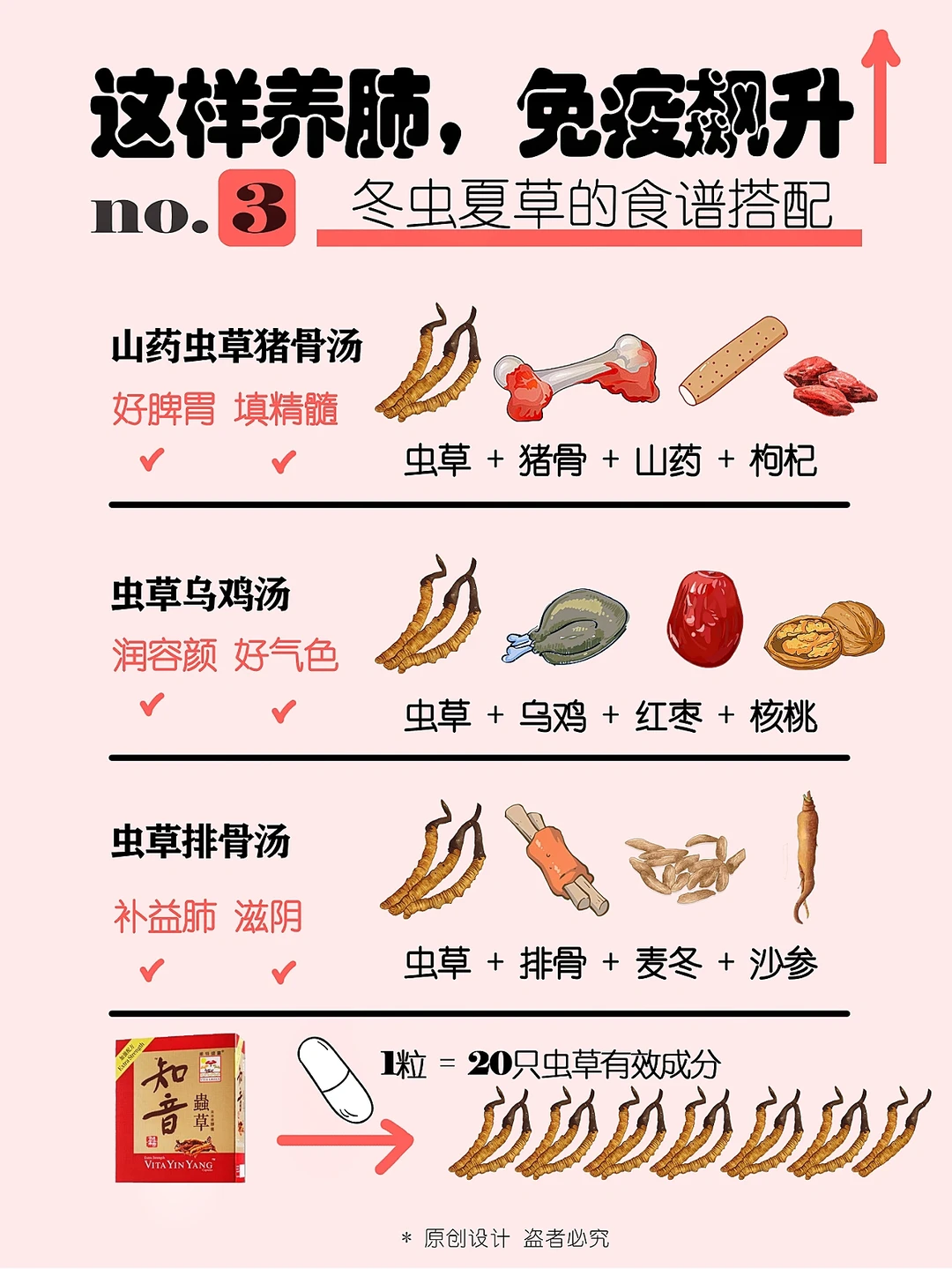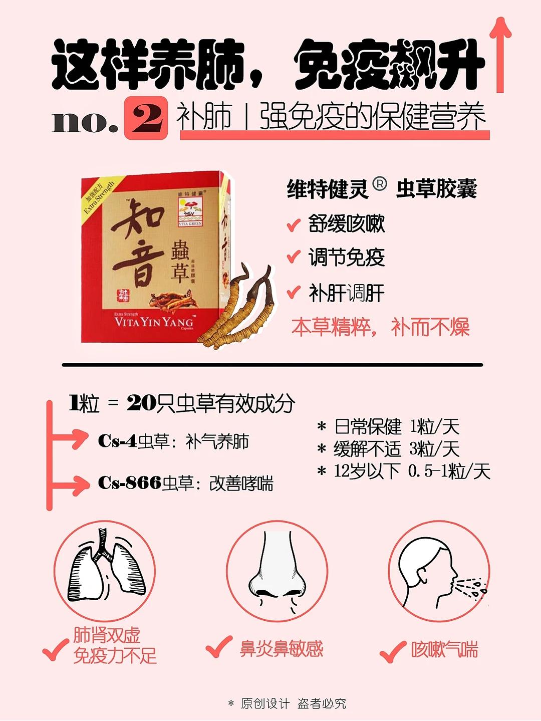 ✅👉除了上述的养生法则,也可以补充专门的“补肺调肺、增强免疫”的营养品!如:维特健灵知音虫草胶囊🔥🔥
