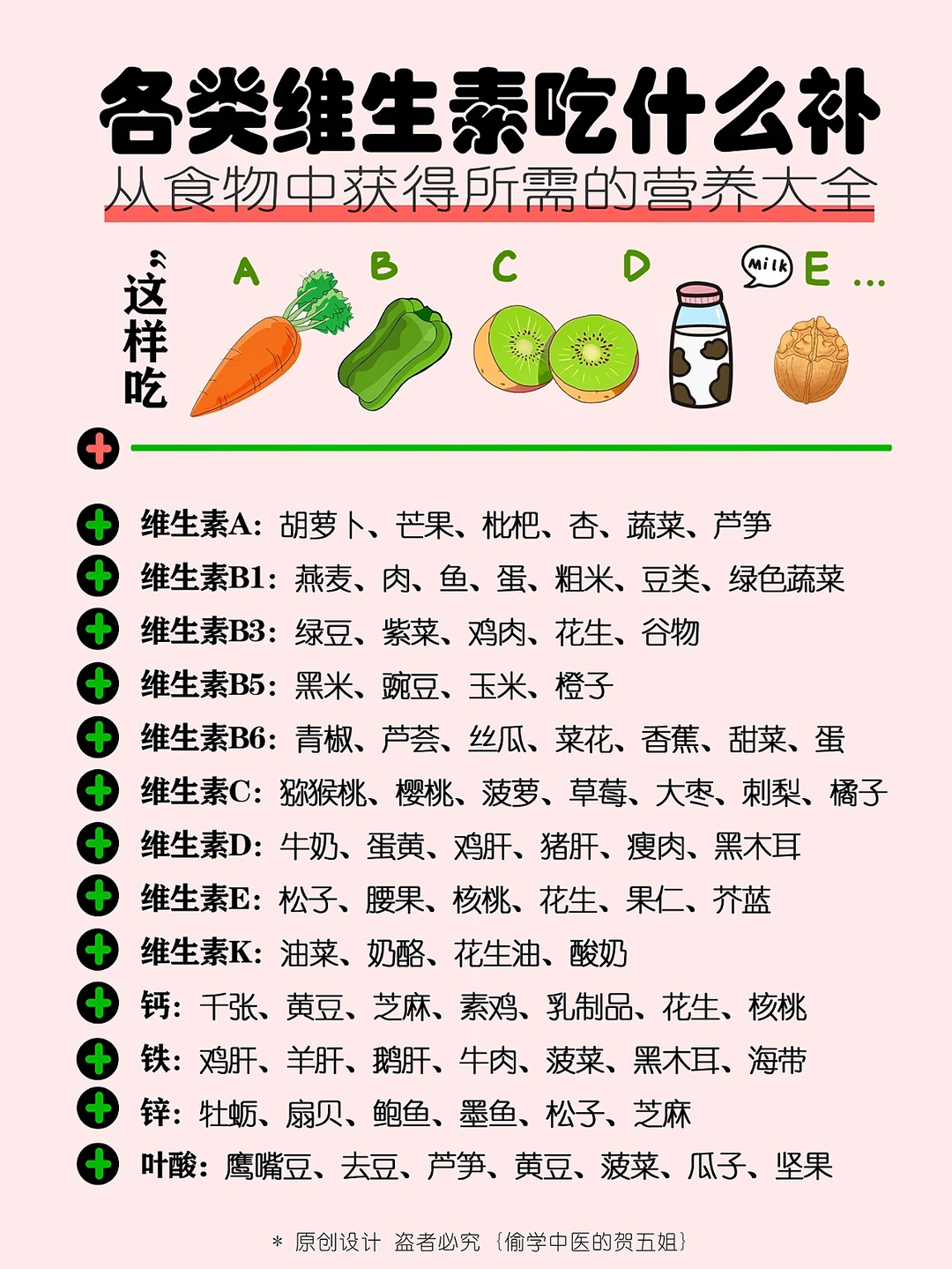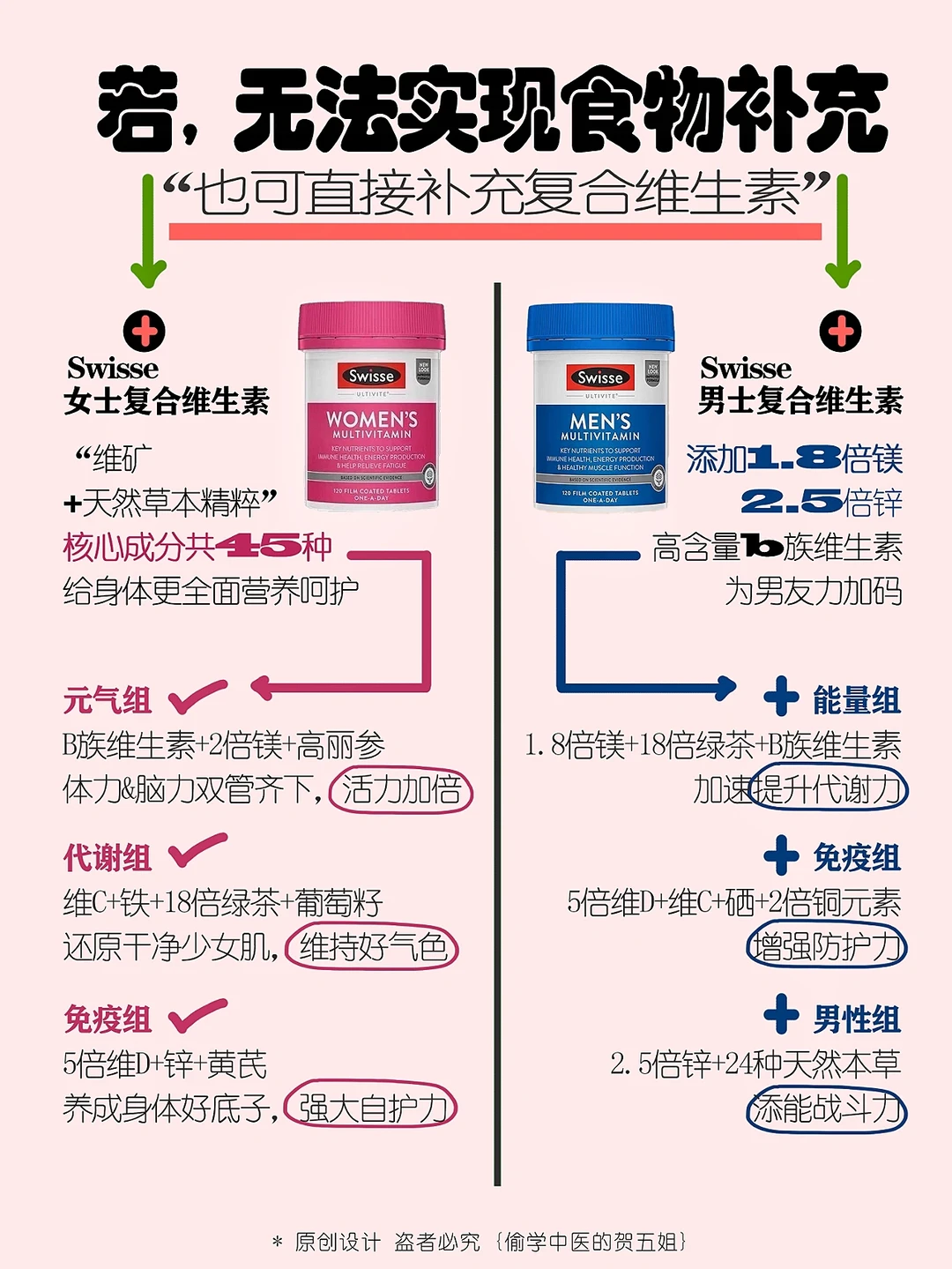 图3有《各类维生素食物来源表》,可以跟着需求补[黄金薯R]若因工作忙碌,无法实现满分级食物营养补充,也可以选带有针对男女性不同需求的营养补充剂“复合维生素”💯💯