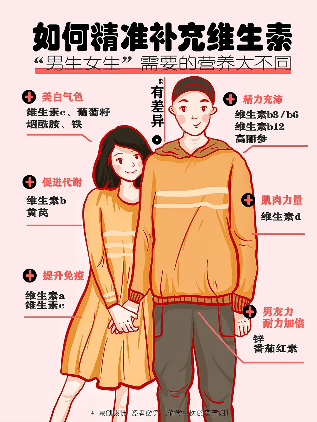 ✅如何精准补充维生素?男生女生因为体质差异,需要精准补充到不同体质所需的元素!