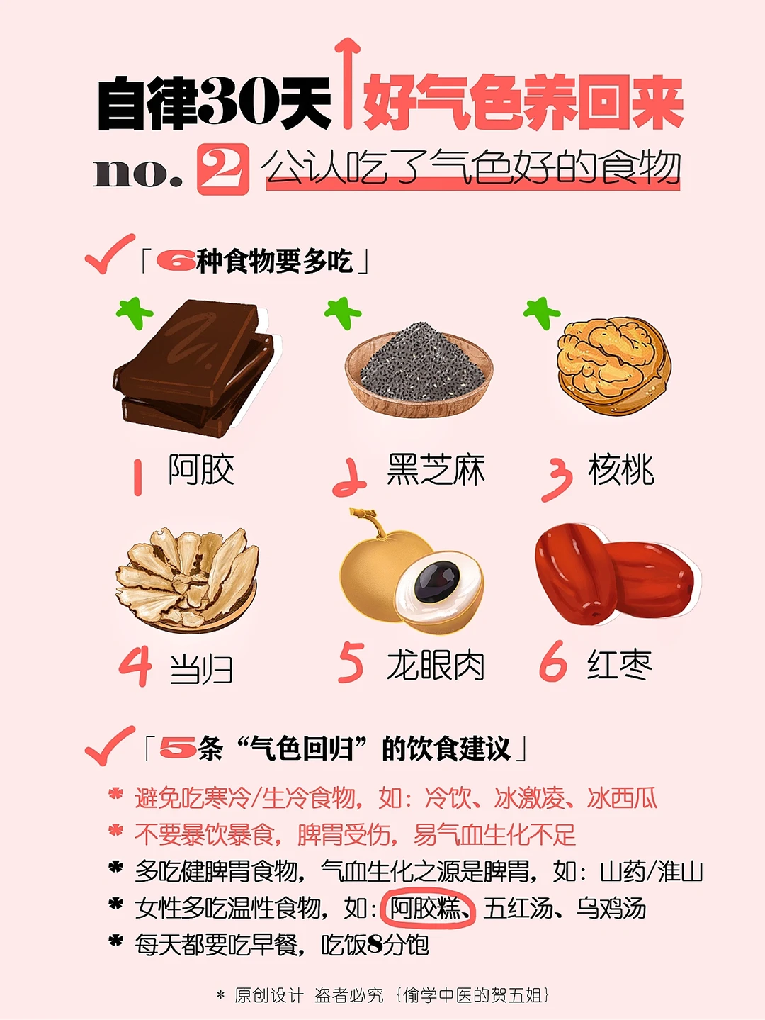 🌟这些食物要常吃:阿胶、黑芝麻、核桃、当归等