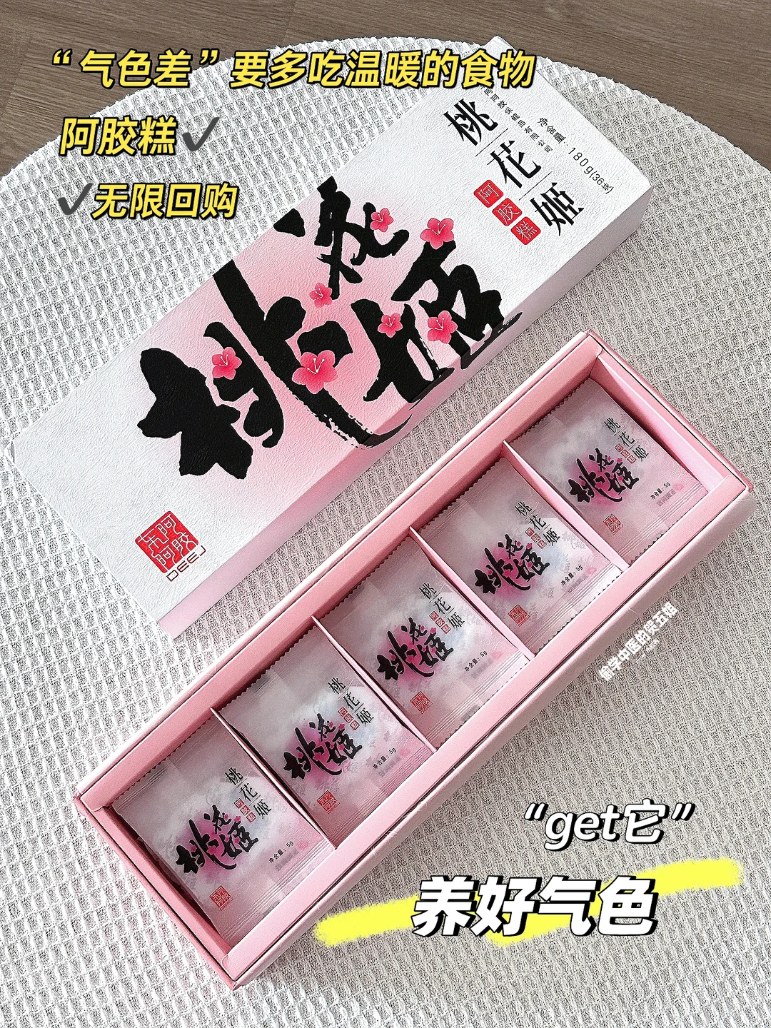 女孩子大多“体质寒”,多吃食性“温暖”的阿胶糕,气血双回⬆️⬆️养出红润好气色哦~如果你总是面色暗黄、经常熬夜加班、气色差、虚虚弱弱~安心get它吧~