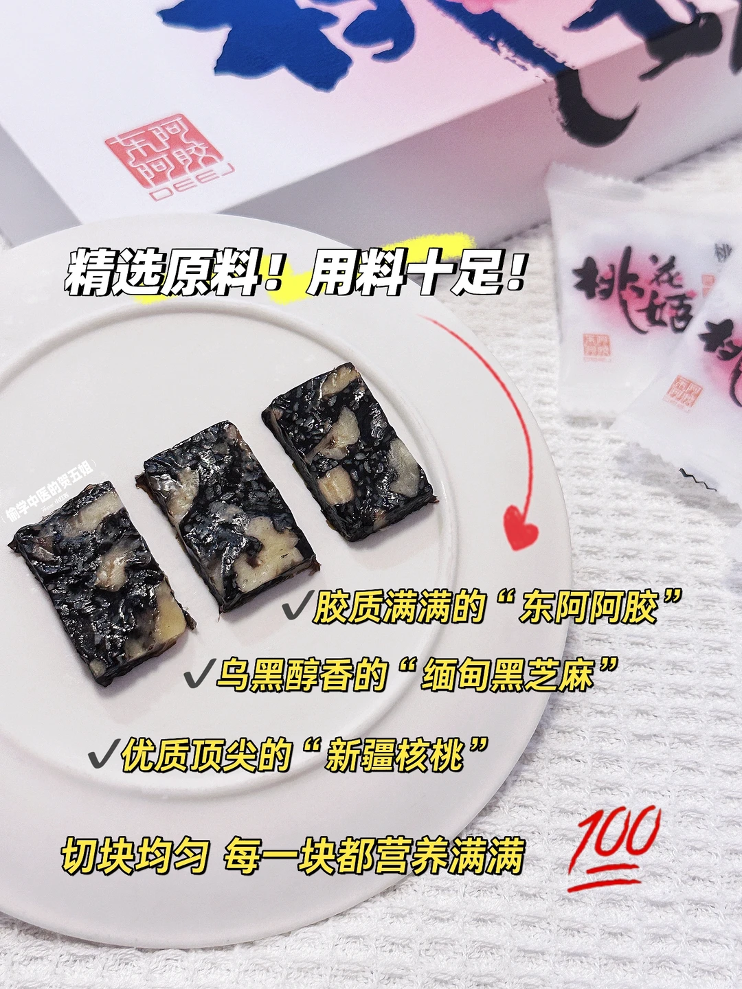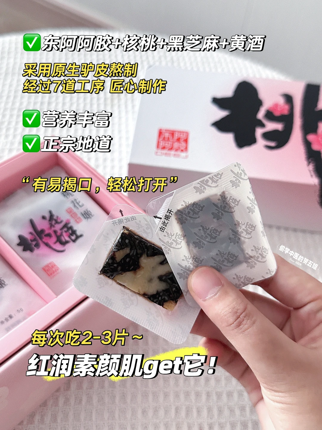 👋安利一款我常吃的阿胶糕——桃花姬阿胶糕, 它采用纯正传统工艺制作,经过了7道工序[吧唧R][吧唧R]搭配了道地的东阿阿胶、缅甸的黑芝麻、新疆的核桃等~味道绵密、细腻!口口阿胶糕都能拉丝![黄金薯R][黄金薯R] 同时,它采用锁鲜技术,芝麻香与核桃香~浓郁香醇,巨好吃!!